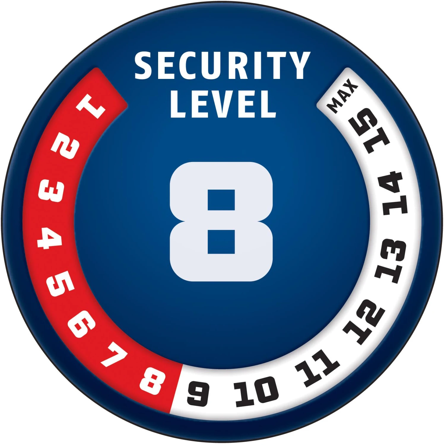 The 402 provides effective protection with its modern, shapely design. The round handle is made of 11mm specially hardened steel and is double-locked in the lock body. The lock body and the locking mechanism behind it impress with the same quality steel as the shackle itself.