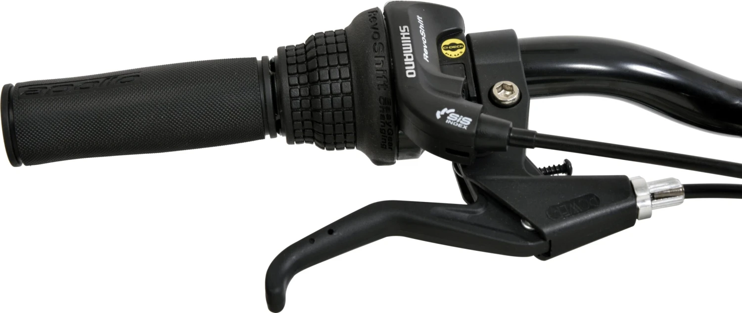 - Gears: Shimano 18 speed gears allow for easier hill riding, with light action Shimano Revoshift twist shift gear shifters, for easy and efficient gear changes