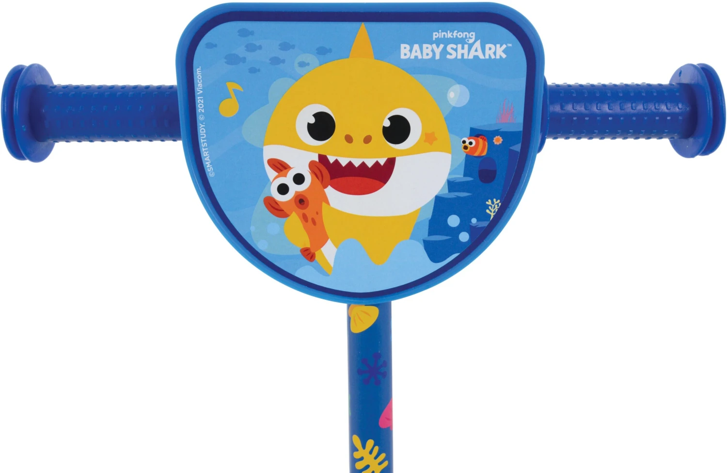 An ideal first scooter for any little one, this Tri-scooter boasts an array of other features too. The fully printed anti-slip foot plate not only ensures safety but features bright colourful Baby, Mummy and Daddy Shark graphics and has smooth sides to prevent knocks to ankles.