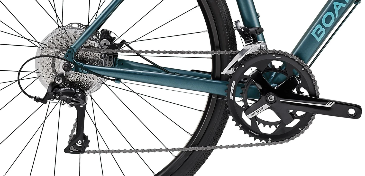 - Wheels: Boardman wheels and 38mm Schwalbe tubeless-ready tyres for balanced performance and comfort on and off road