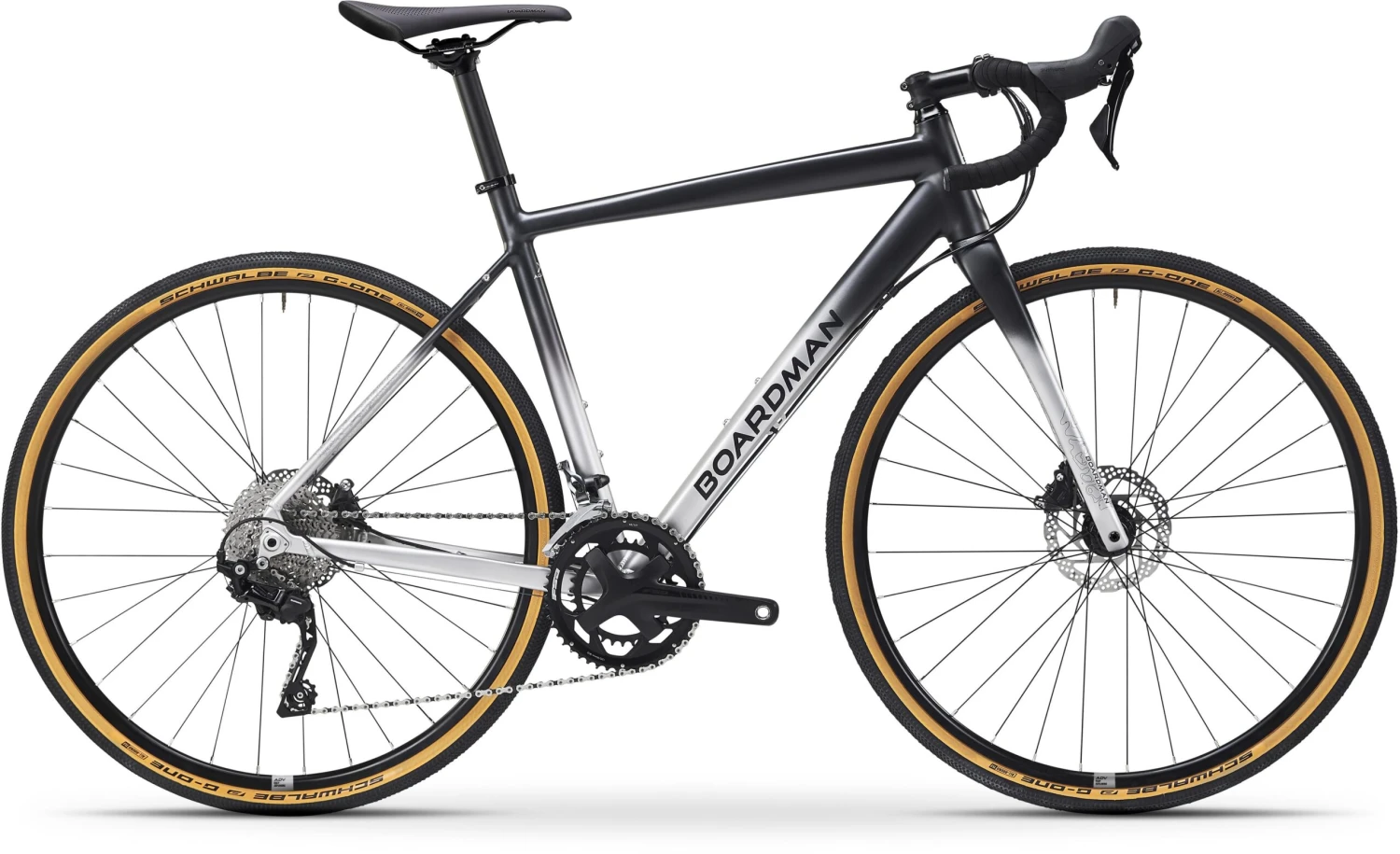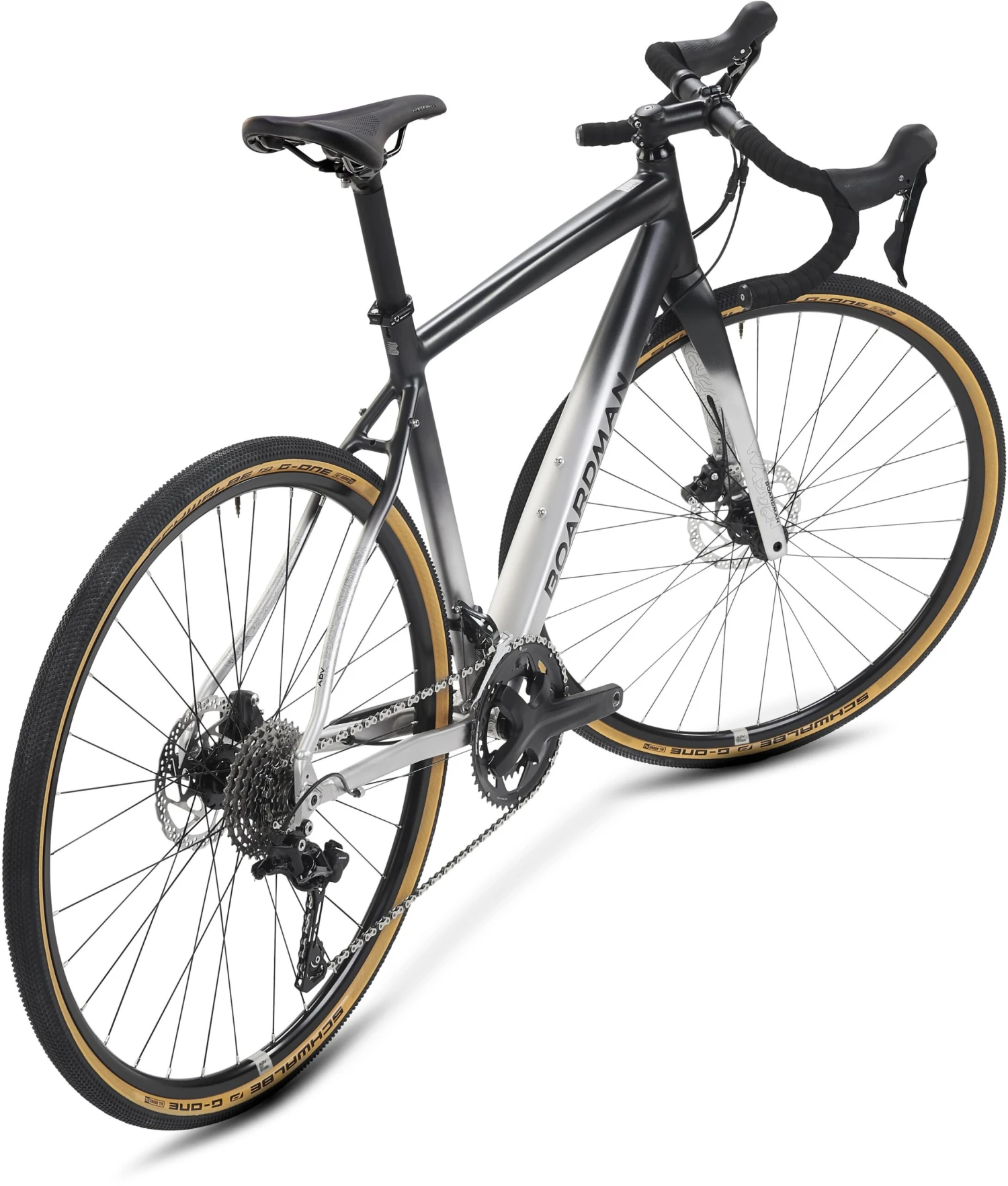 - Wheels: Boardman thru axle wheels and 38mm Schwalbe tubeless-ready tyres for balanced performance and comfort.