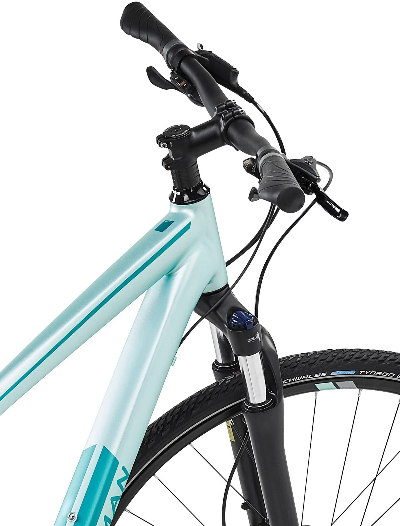 The 8.6 is fitted with a Suntour NEX fork which has 63mm of travel to smooth out the bumps and lock out to ensure maximum efficiency on climbs. Schwalbe Tyrago K-Guard 35mm tyres offer comfort, control and speed on both road and loose surfaces, with the added benefit of puncture protection. The MTX 8.6 comes equipped with Shimano Altus 2×9 gears to give you a wide range of options with a slick shift feel. Tektro hydraulic disc brakes give controlled stopping power in all conditions.