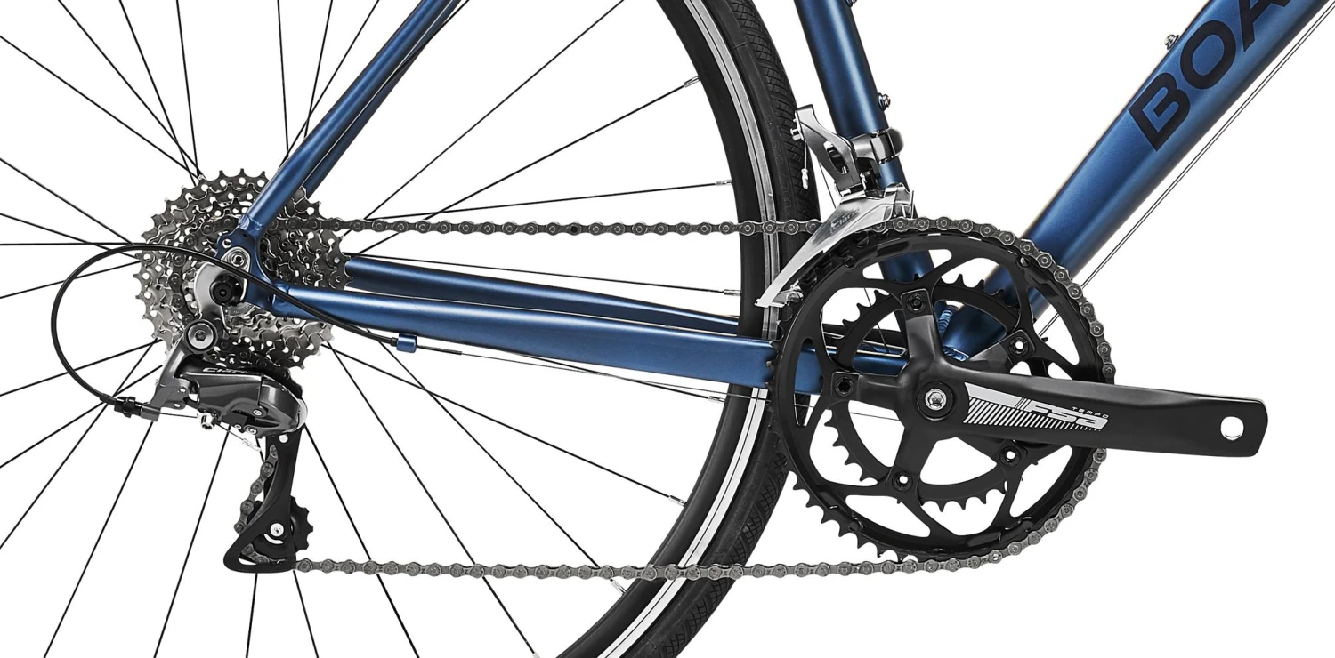 The new Boardman SLR 8.6 Road Bike uses a redesigned, triple butted 6061 aluminium frame evolved from the first generation SLR 8.6 and 8.8, featuring aero tube profiles and endurance geometry. The curved, dropped seatstays in particular not only provide more comfort but give the bike a purposeful look. Full carbon forks save weight and also vitally reduce vibrations, giving increased comfort and increased confidence to push on and start to better your times with every ride. Riders loved the drivetrain on the previous SLR 8.6 because of its great gearing range – this has been updated and increased so whatever may lie on your route, you’ll have the gears to beat the challenge.