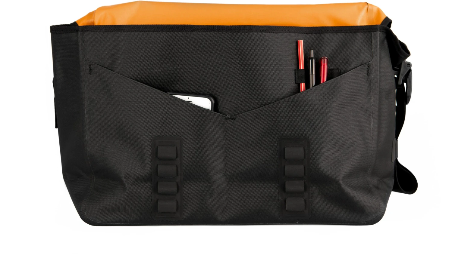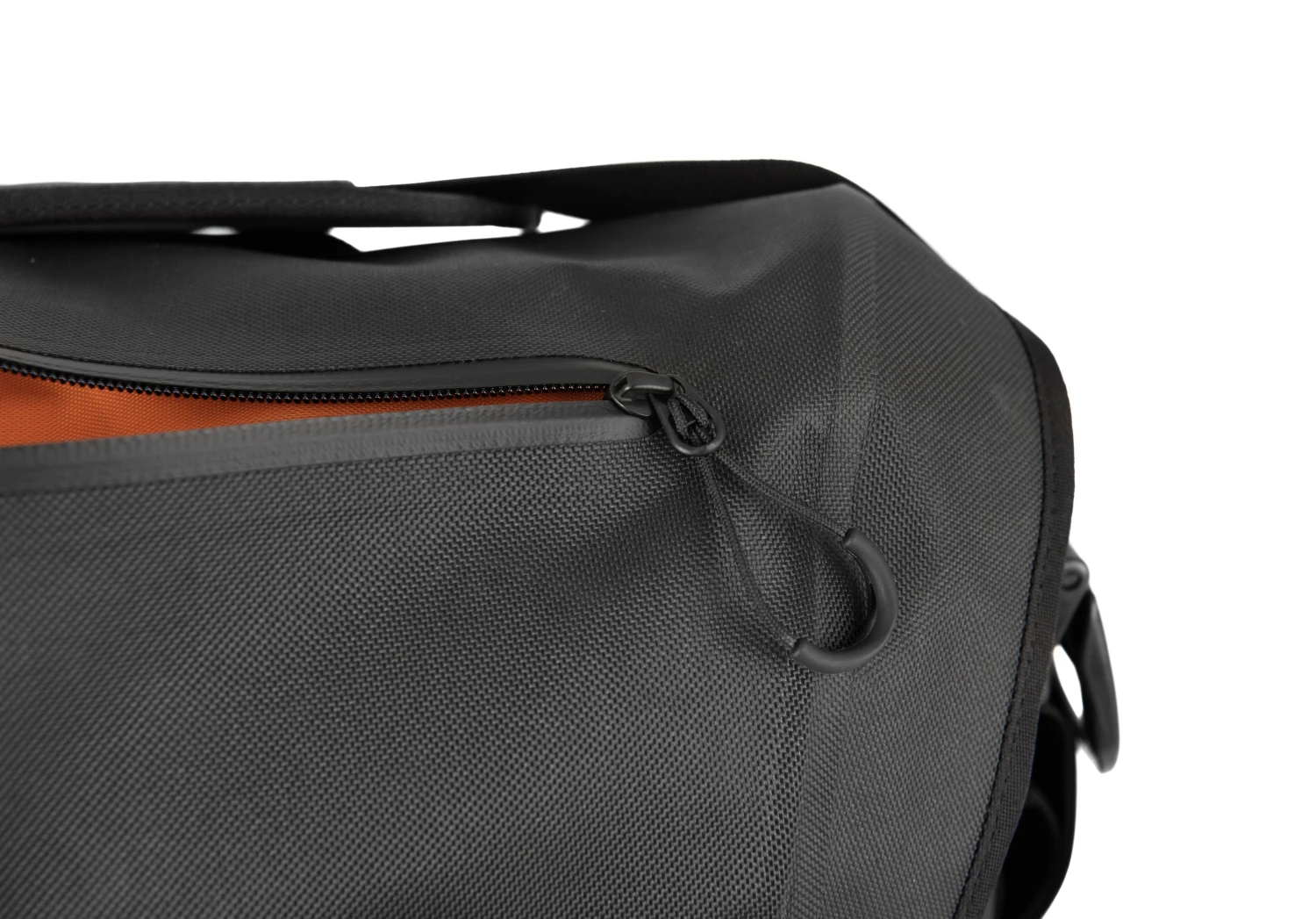 A well proportioned everyday messenger bag with full waterproof capability. A perfect all-weather city commuter. Made using Radio Frequency Welding, instead of stitching, making the bag completely impervious to water. This bag features a padded laptop sleeve, large ‘invisible’ front flap pocket and bright orange internal lining to help locate items quickly.