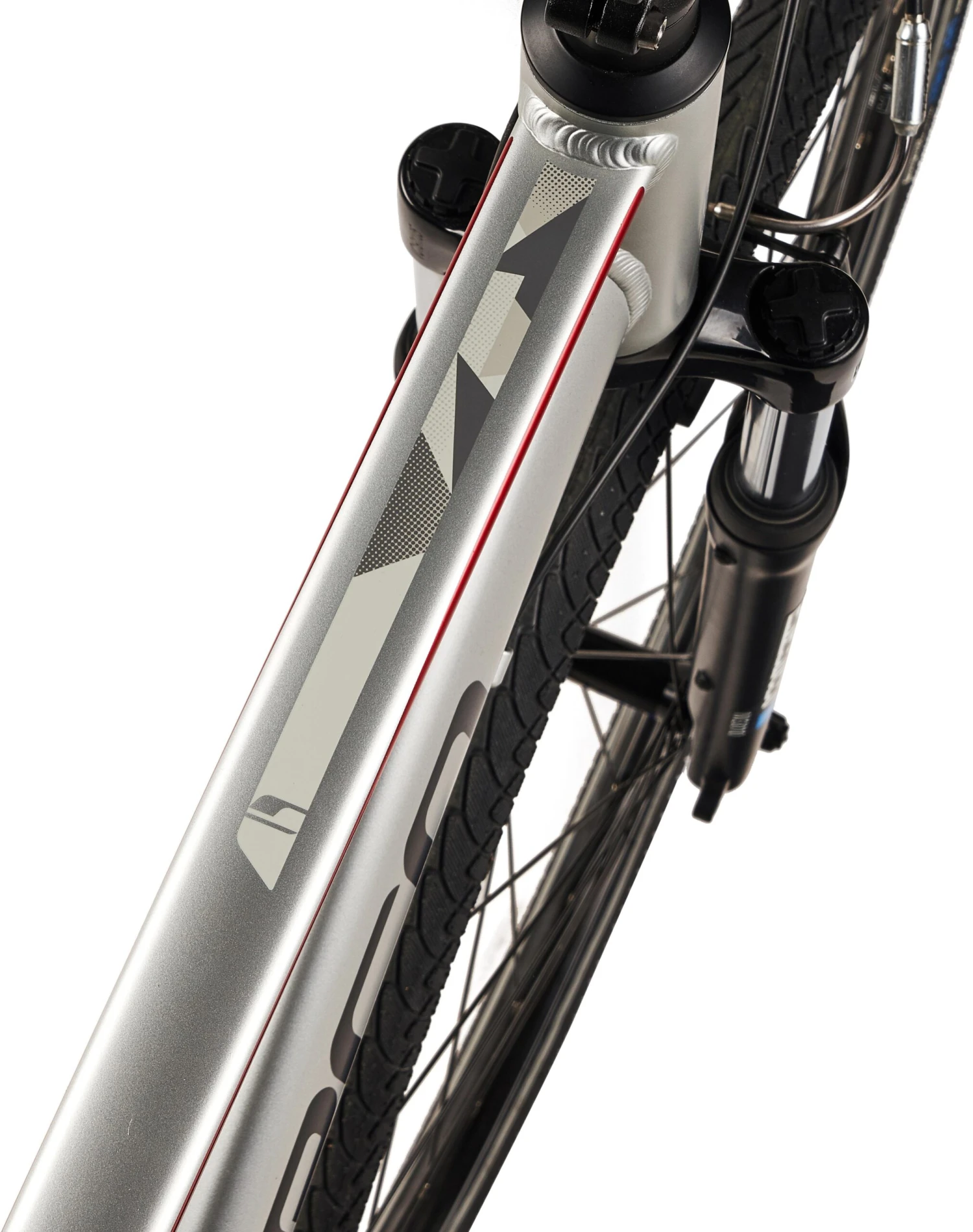 - Forks: 63mm Suntour front suspension fork for controlled riding on uneven terrain