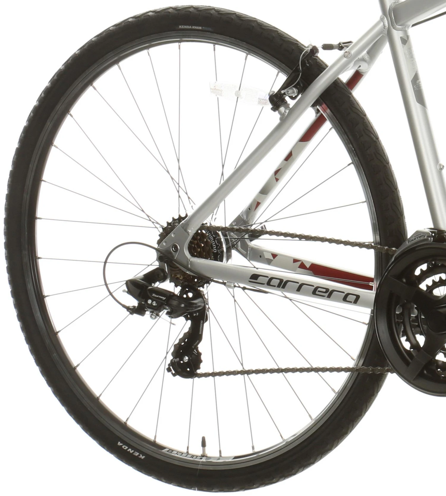The Carrera Crossfire 1 features the classic triple chainset. This set up is perfect when climbing hills or when the bike is carrying extra weight as those extra gears mean there will always be one suitable for you to tackle your ride ahead.