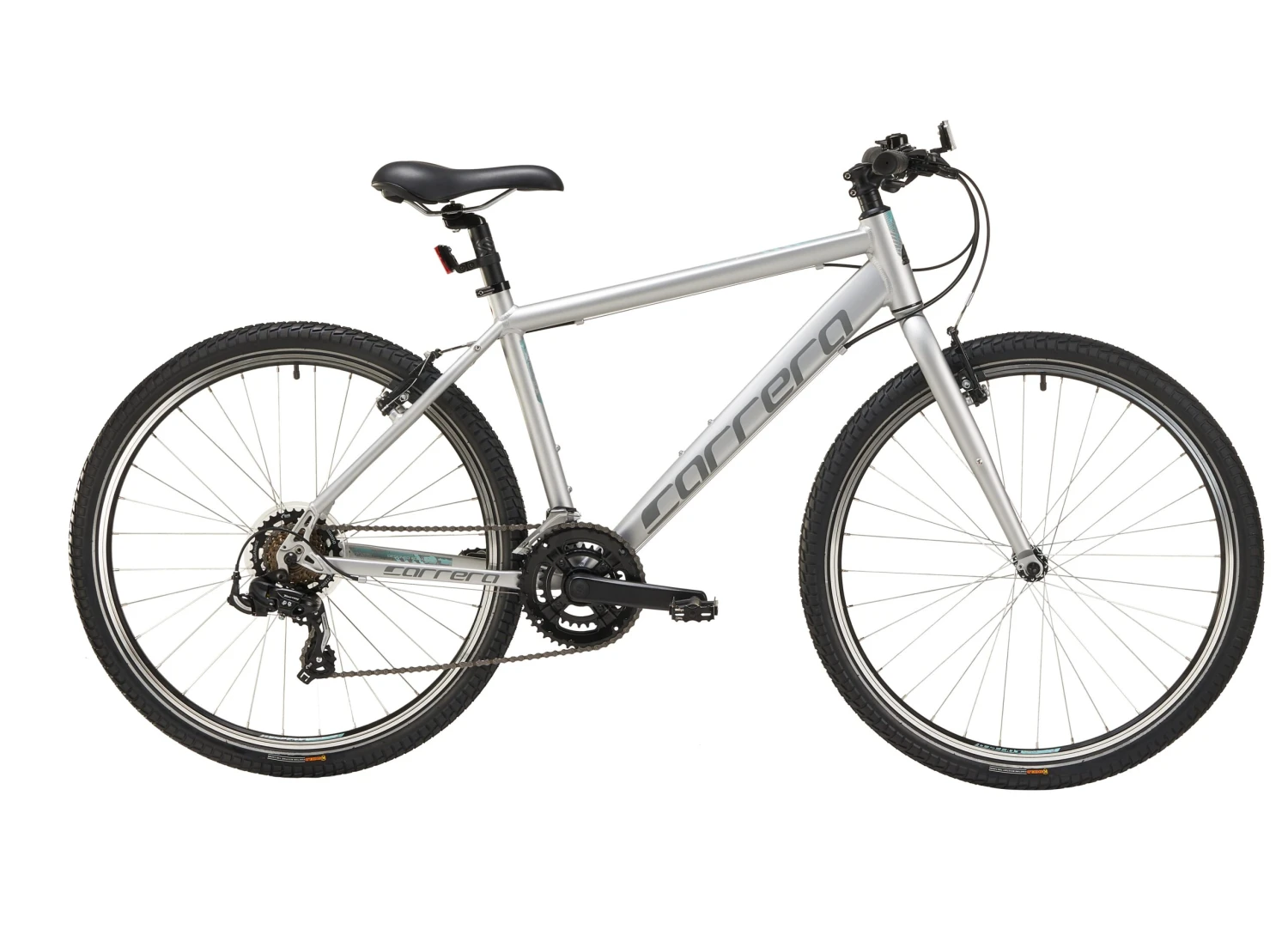 Whether you’re looking for an easier commute or there’s some unchartered territory crying out to be explored, the Carrera Parva Womens Hybrid Bike – Grey helps take you further. With its new geometry having been designed to offer new improved levels of comfort, the lightweight but durable alloy frame, which comes with a lifetime guarantee, is ideal for leisurely rides or around town. The Shimano 2x drivetrain is simple to use, makes for smoother gear transitions and delivers fantastic performance from the 2×7 gears. Designed with an extra layer, the fast rolling, puncture resistant, 27.5 x 1.95 tyres have double walled rims for extra durability. And, when you want to keep going, the memory foam saddle will keep you well supported