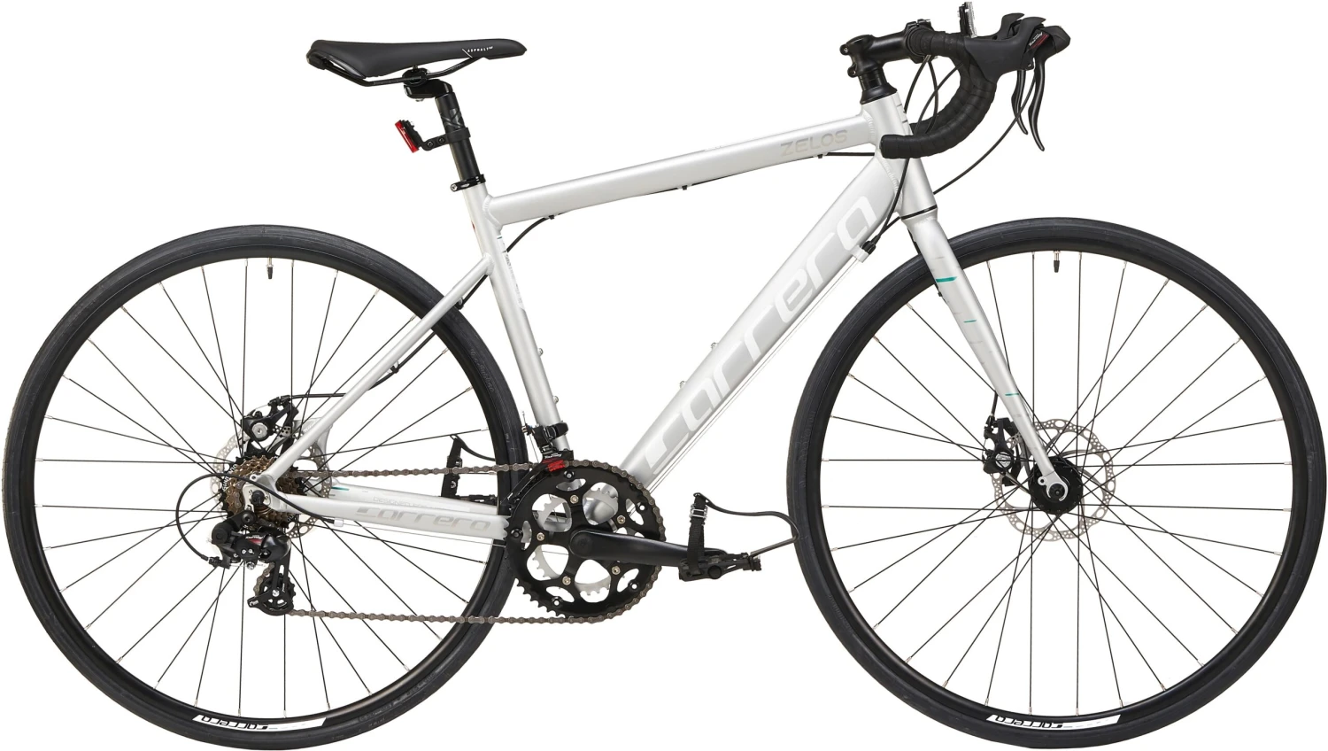 Designed and built for speed, the Carrera Zelos has the perfect combination of features for hitting the road featuring a slick lightweight alloy frame and an upgrade on previous with mechanical disc brakes.