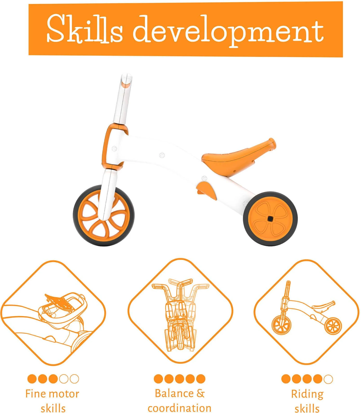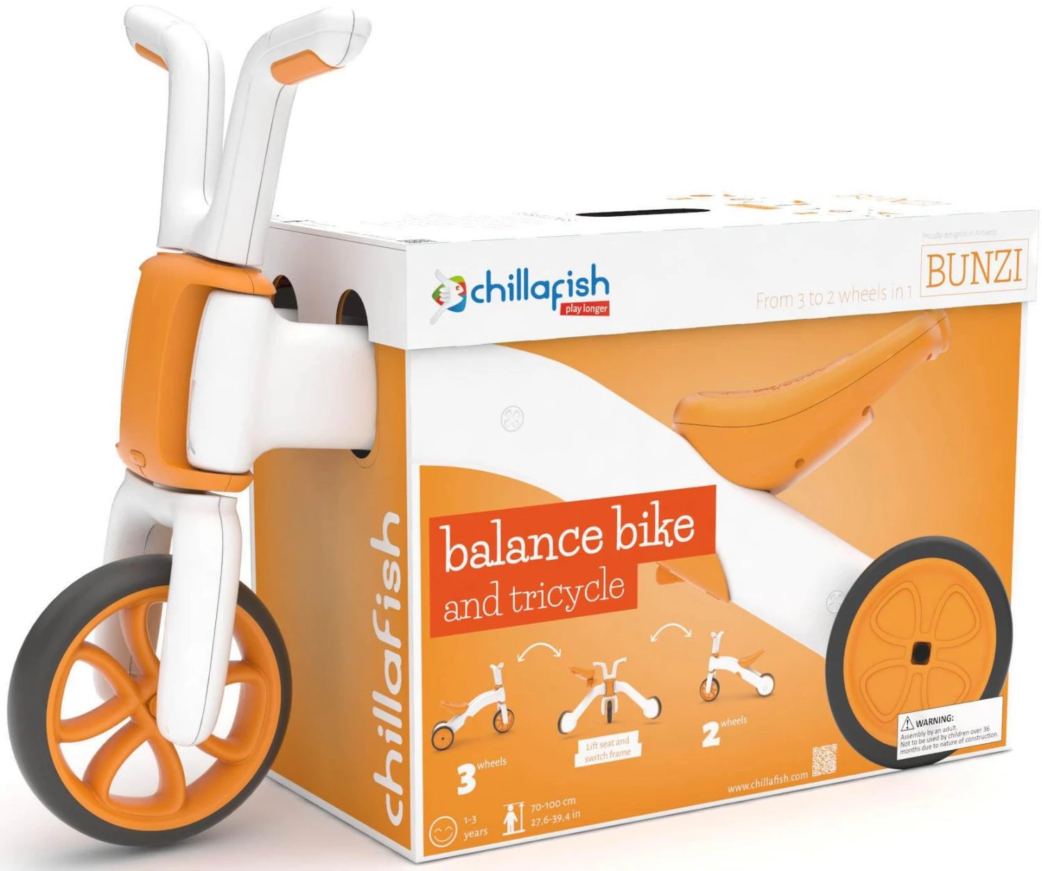 Chillafish Bunzi 2-in-1 gradual balance bike and tricycle is uniquely designed to help teach your child balance at his own pace in a fun way. Your child learns to balance step by step on 3 wheels and when it's ready, on 2 wheels. Made of high-quality ABS material, the frame can switch between a 3-wheel mode to a 2-wheel mode in just a few seconds; no tools required.