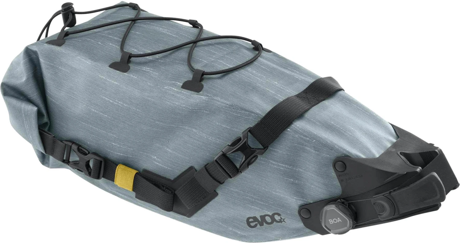 Regardless of whether you prefer to ride your road bike, gravel bike or mountain bike: The easy-to-mount saddle bag offers extra storage space and thanks to the innovative quick-fix system with BOA® Fit System, it is not only mounted on any seat post in a flash – it also offers uncompromising and therefore worry-free grip on rough trails or cobblestones. The bag is just as carefree when it comes to handling. Its material and welded seams make it absolutely waterproof. It is also robust, dirt-repellent and abrasion-resistant. The large, roll-up opening allows quick access to the contents and additional equipment can be attached to the outside with elastic cords. The EVOC Seat Pack Boa WP saddle bag is available in four different sizes: with 6 or 8 litres of packing volume for day trips and micro-adventures and with 12 or 16 litres for multi-day tours and expeditions.