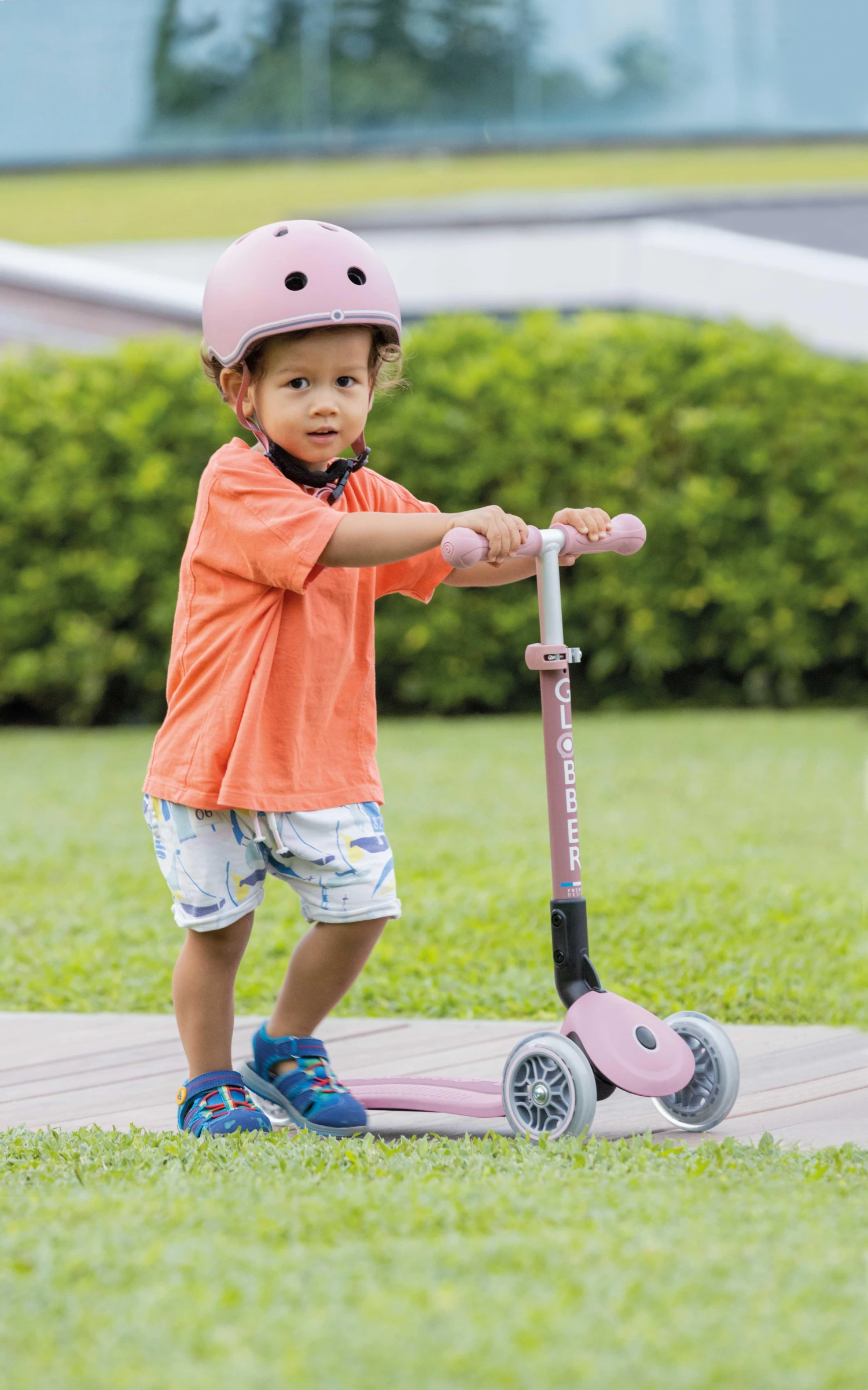 As your little one’s scooting confidence grows, the lock button can be easily released so they can turn the wheels and scoot independently. The super-low reinforced deck on this eco-scooter is just as durable as a traditional scooter deck, with less environmental impact. The sustainable anti-slip deck is durable to support up to 50kg for all-day scooting adventures.
