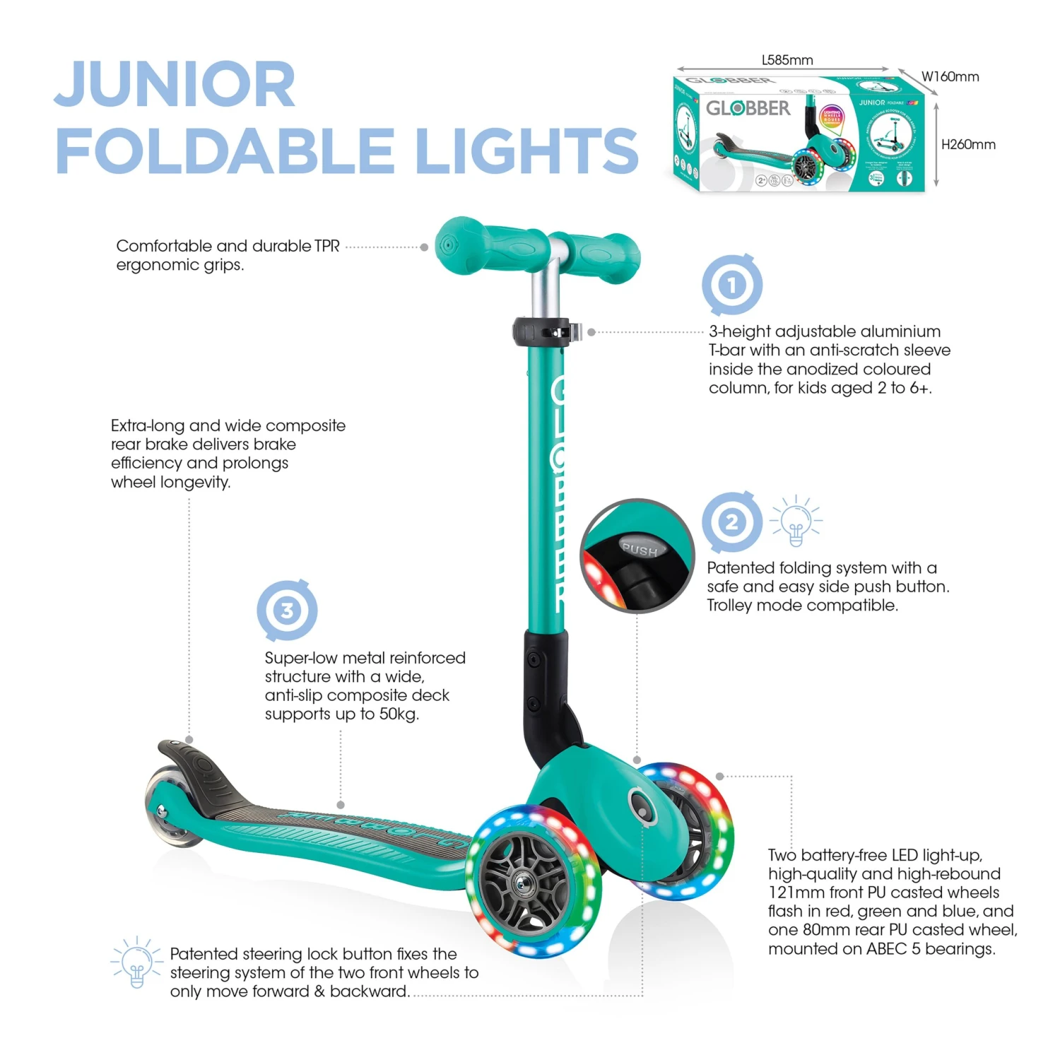 Globber Junior Foldable Lights Kids Scooter – Violet – Extra Info