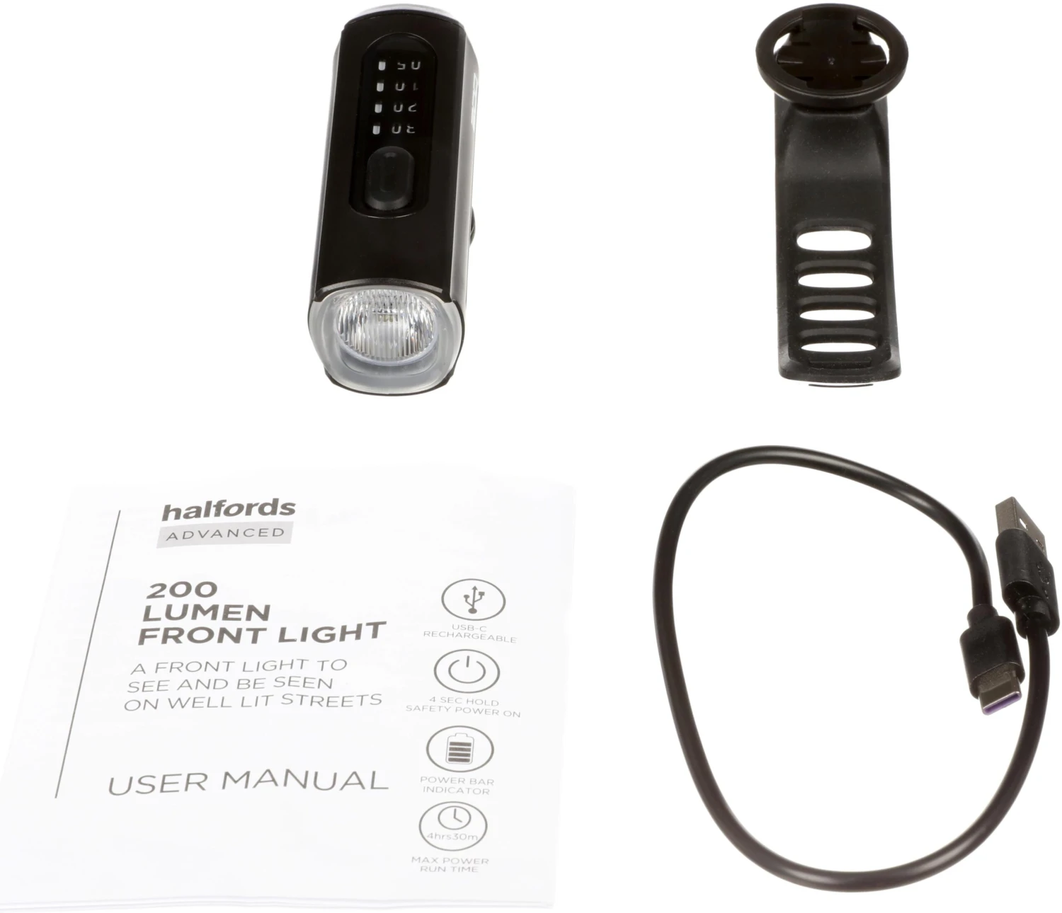 The new and improved Halfords Advanced 200 Lumen Front Bike Light is perfect for commuters in well-lit urban areas, featuring 8 lighting modes for versatile riding and a wide vision cut off beam to avoid dazzling traffic.