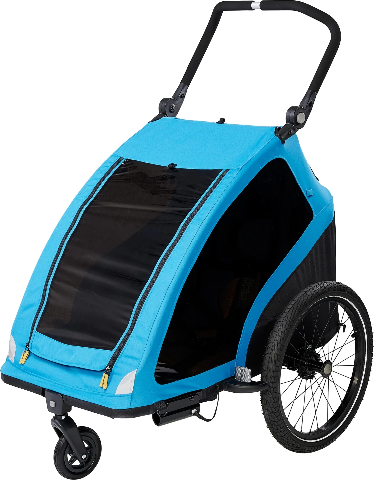 - Quick and easy changing between bike and stroller modes