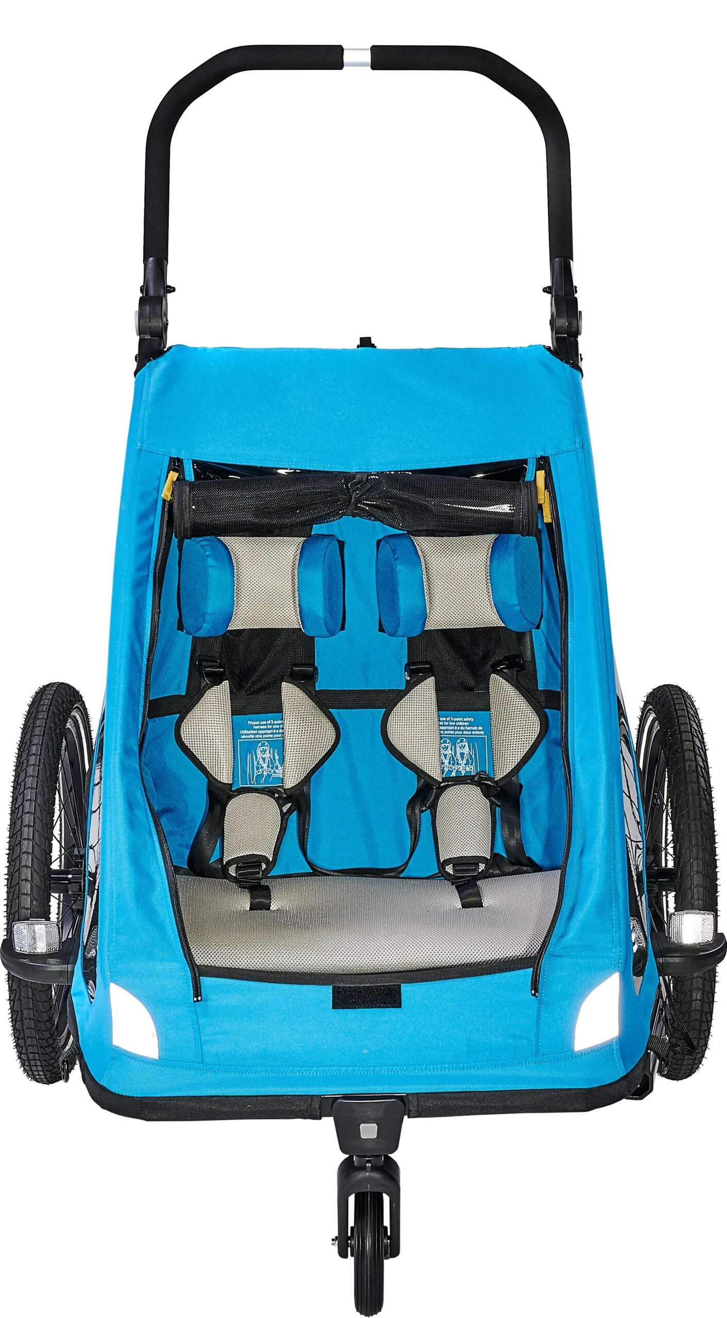 - Foot parking brake helps control the trailer in stroller mode and when strapping in kids
