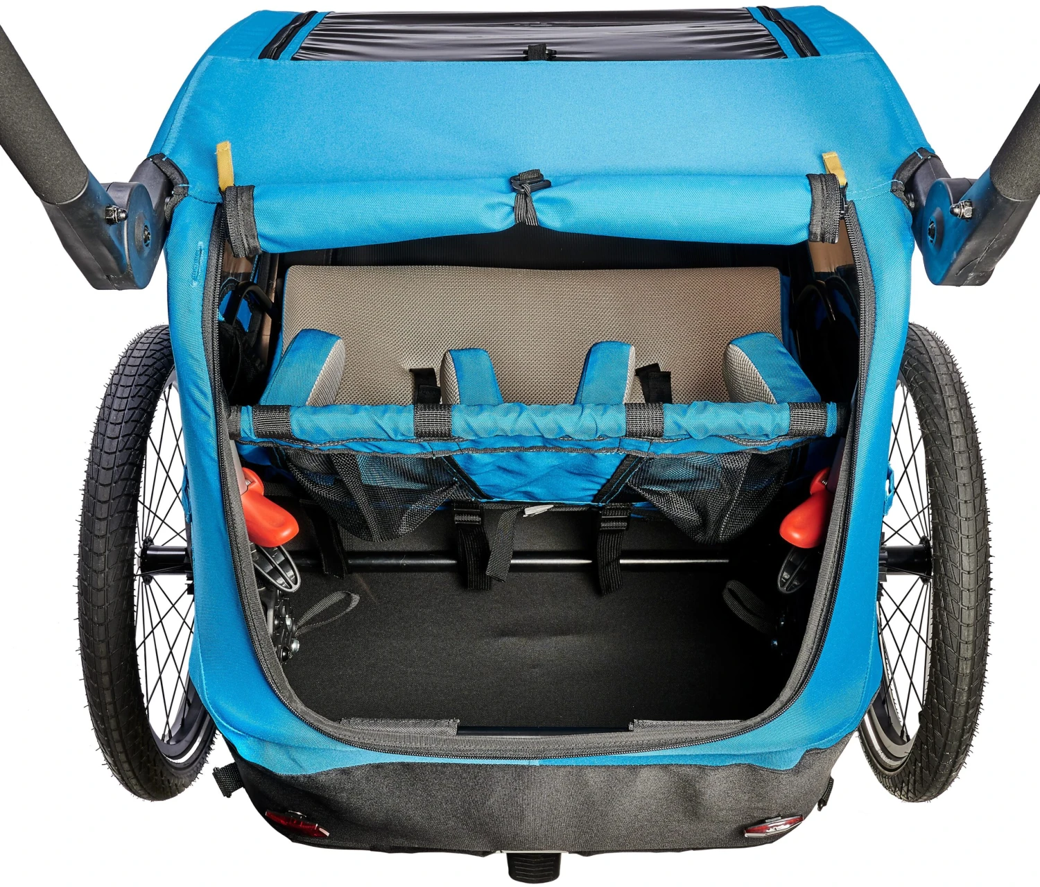 You don’t need to compromise on safety or comfort either; you can relax knowing that the solid base and steel frame will keep your kids secure, while they kick back and enjoy the ride in the ultra-comfortable cushioned cabin. As well as the spacious interior, there’s also loads of cargo space for you to store all your adventure essentials, from picnic baskets to raincoats!