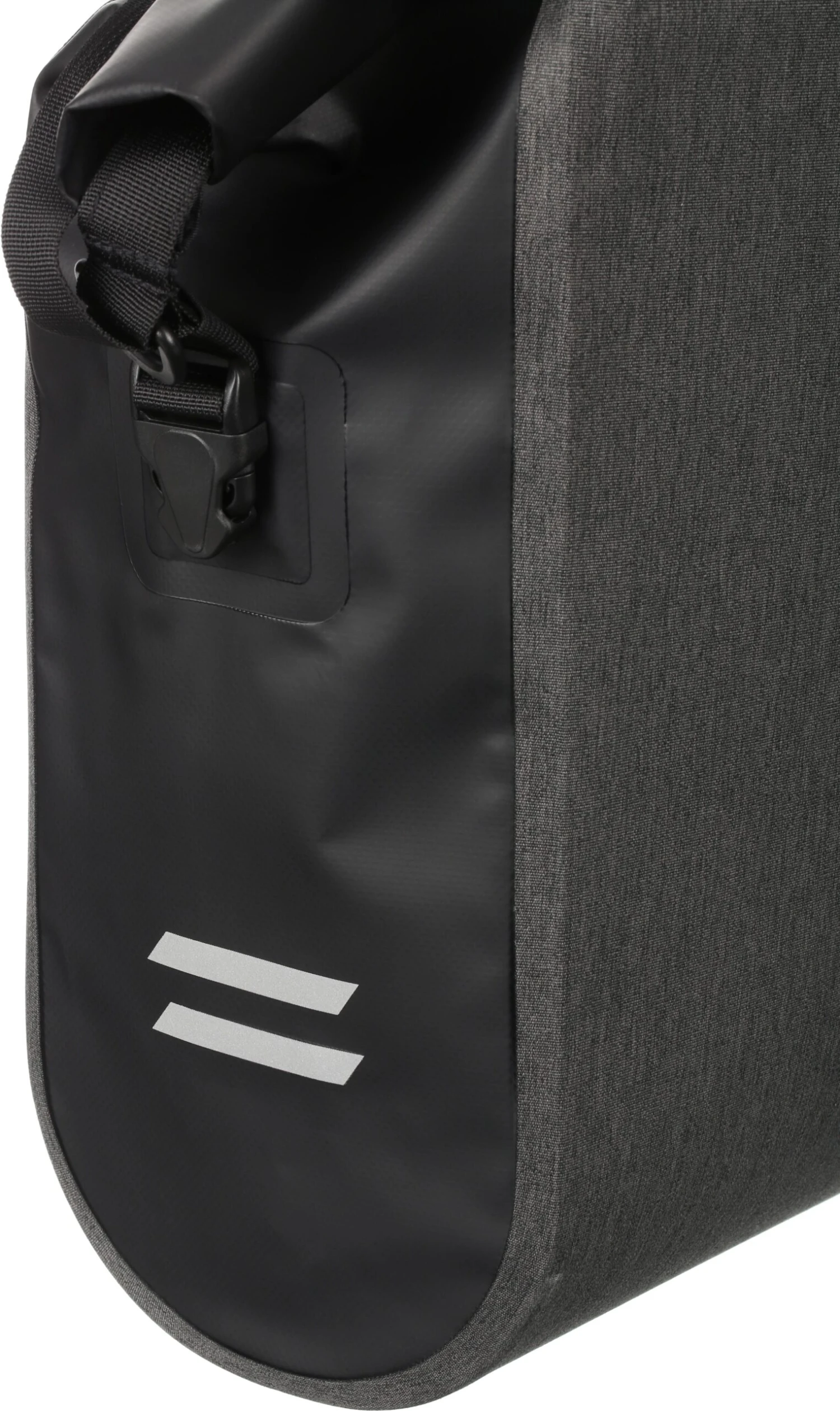 With quick-release pannier mounts, the bag can be removed using just 1 hand, and then easily transported using the removable shoulder strap. Strategically placed reflective prints help increase visibility during nighttime.
