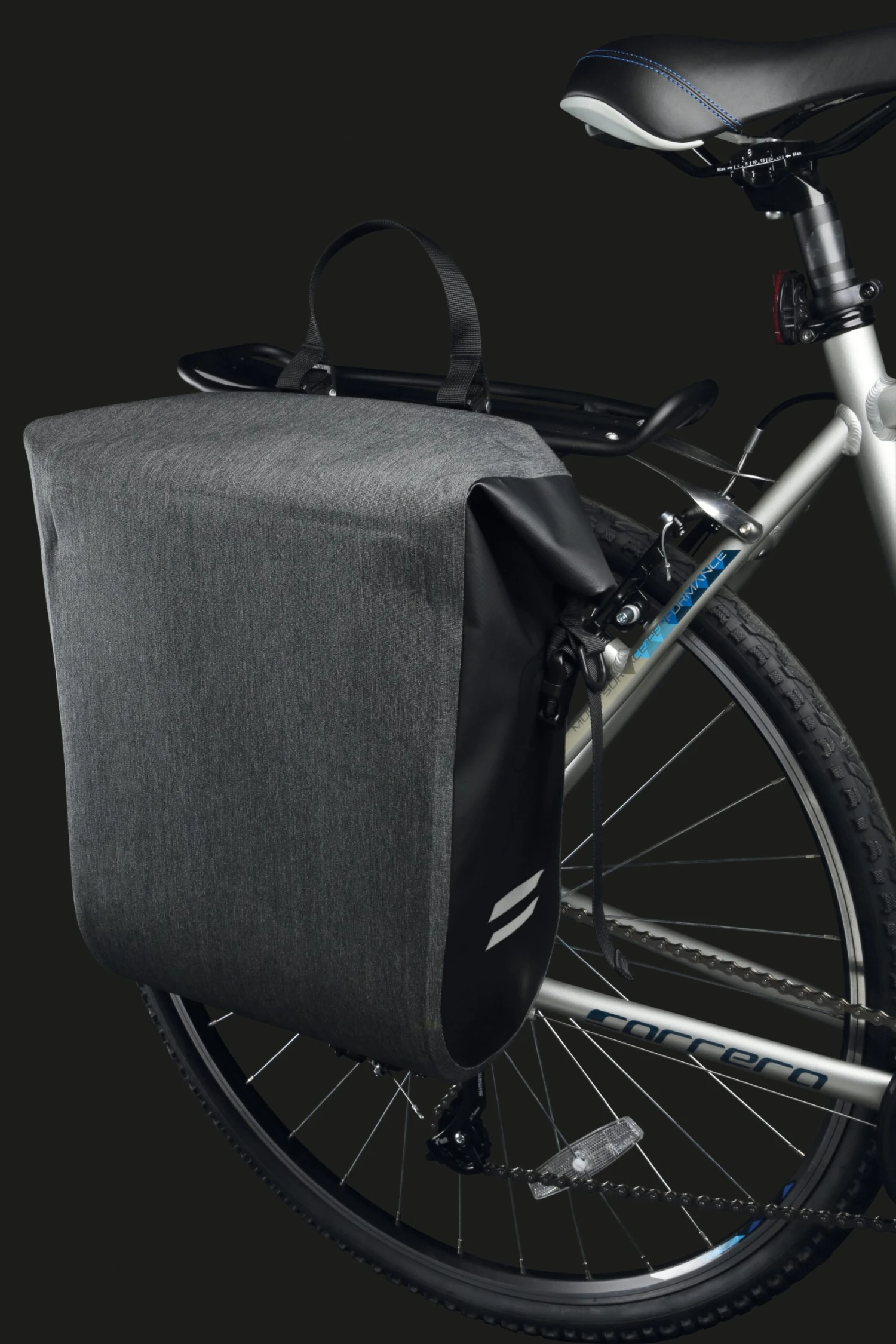 The Halfords Advanced Pannier Bag is designed with commuters in mind. It is fully waterproof with tough welded seam construction and has a roll-top closure to ensure absolutely no rain can get through.