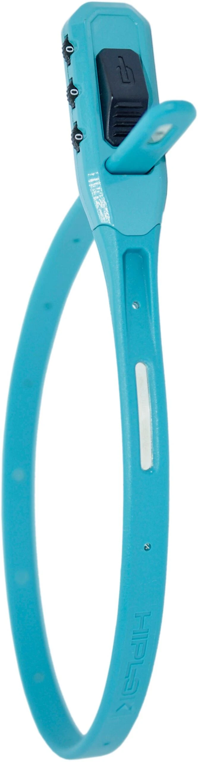 Lightweight, multi-function security tie with integrated 3-digit resettable combination lock. Hiplok Z Lok Combo Lock's steel core and unique ratchet design, which fastens while locking, offers practical added protection for short café stops, with accessories, kids bikes and for other outdoor equipment.