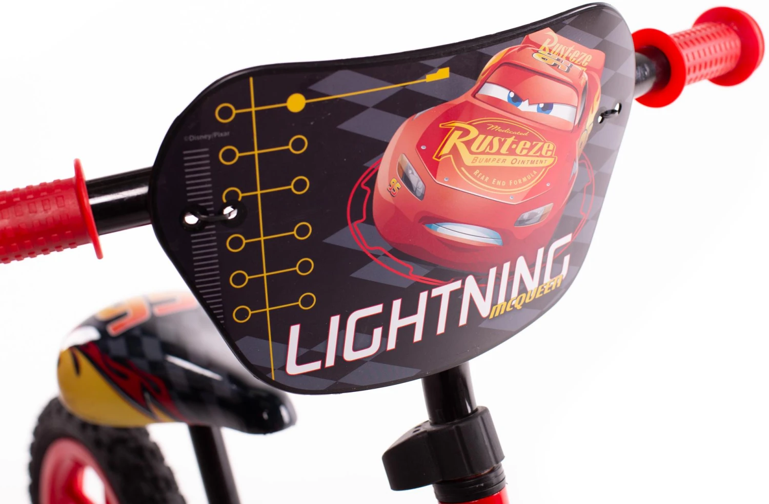 - Lightning McQueen Racing Plate – Take part in the Piston-Cup with this colourful handlebar plaque. Featuring Lightning McQueen and racing decals.