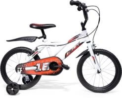 The Huffy Pro Thunder 16″ Bike is begging for awesome adventures with family and friends! Fun colours and cool racing graphics, the Pro Thunder has what you need for miles of memories. The durable steel frame bike in bright white comes with rugged tyres on matt black rims, wide stabilisers for added stability and adjustable seat helps to get the right height for your child. Pro Thunder includes an adjustable padded seat and handlebar to get the right fit.