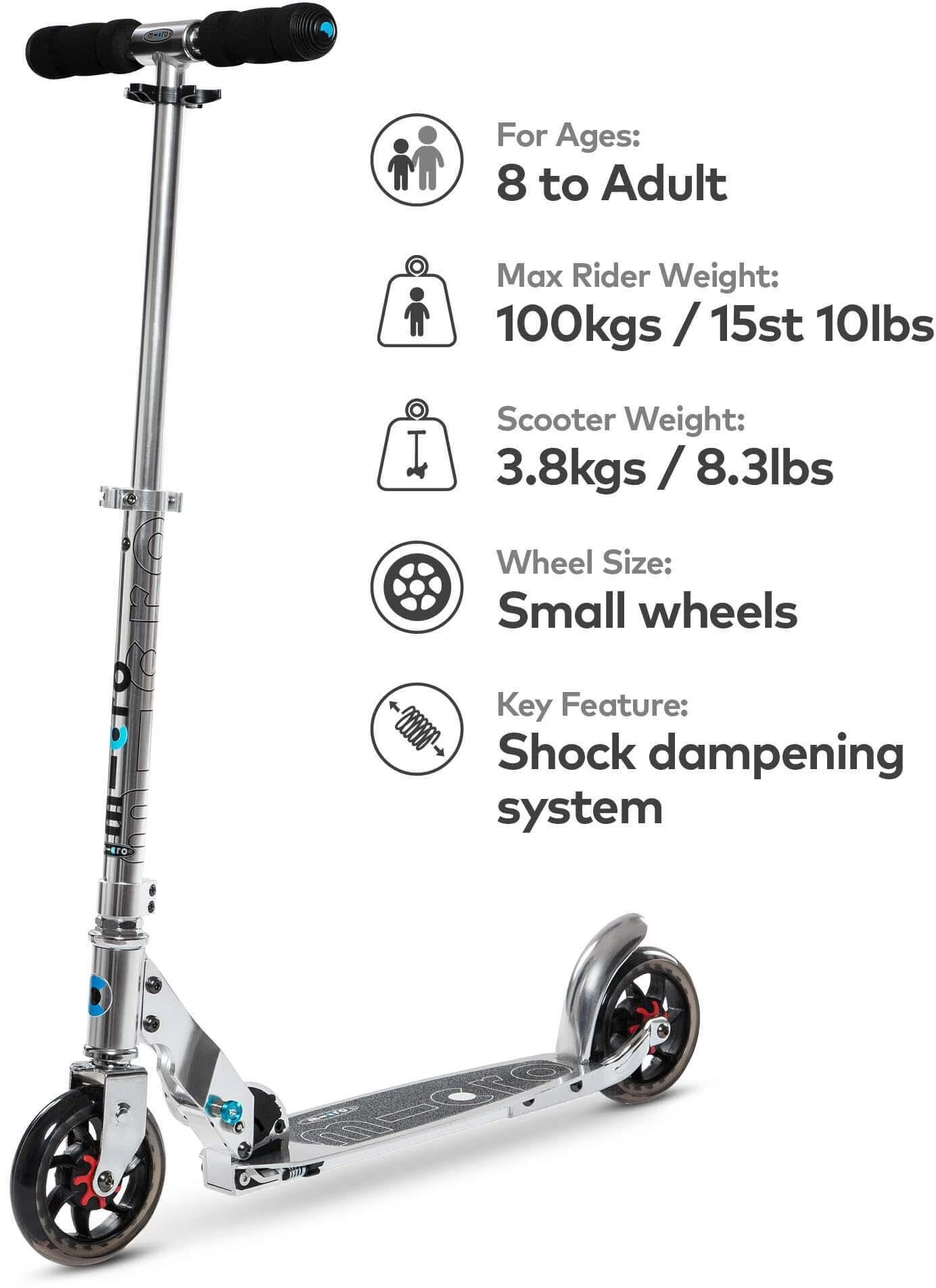 Micro Speed Scooter – Silver Extra Info