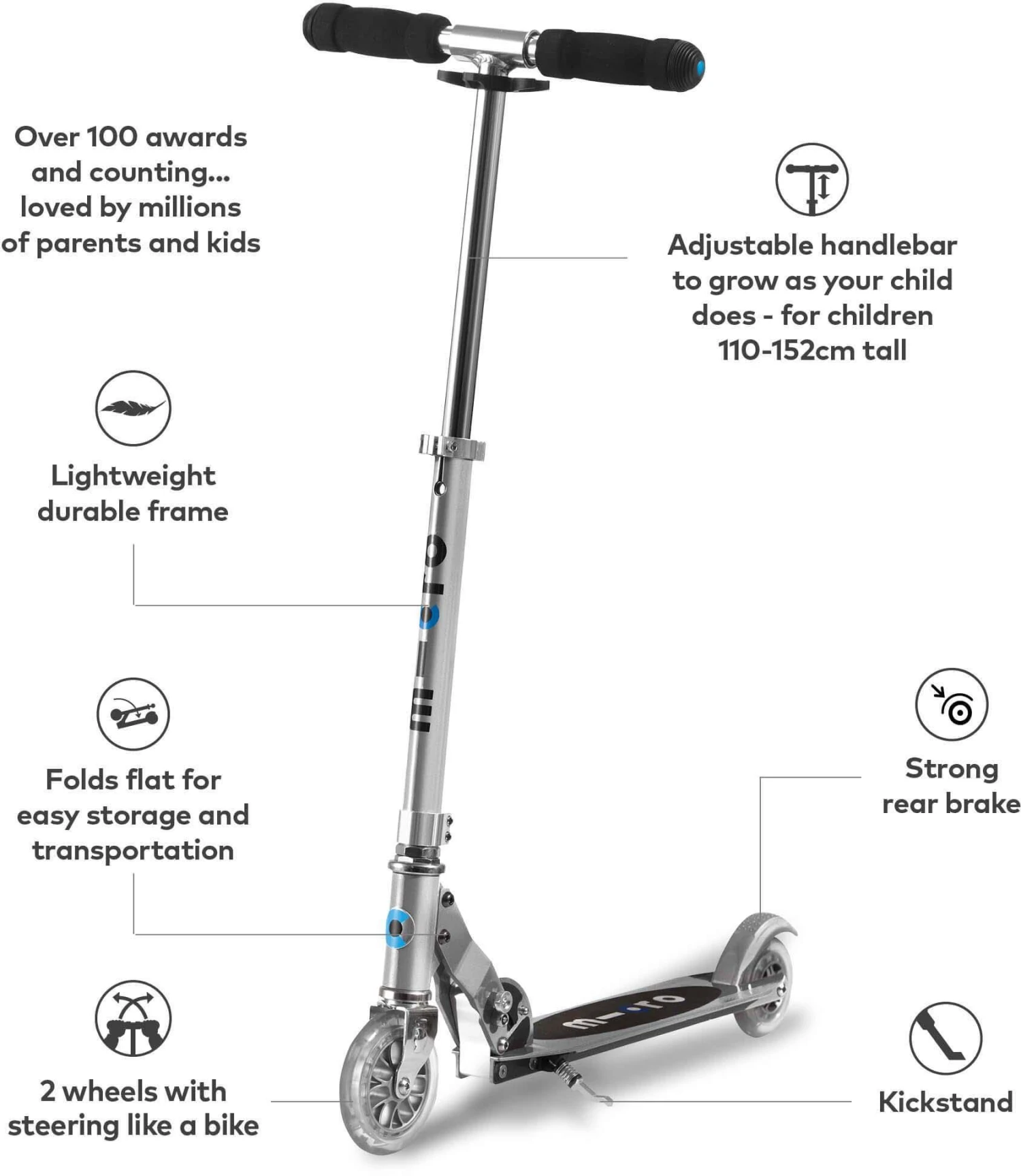 If your child is looking for their first funky two-wheeled scooter, the combination of winning features manufactured in the Micro Sprite makes this variation of scooter a fantastic option!