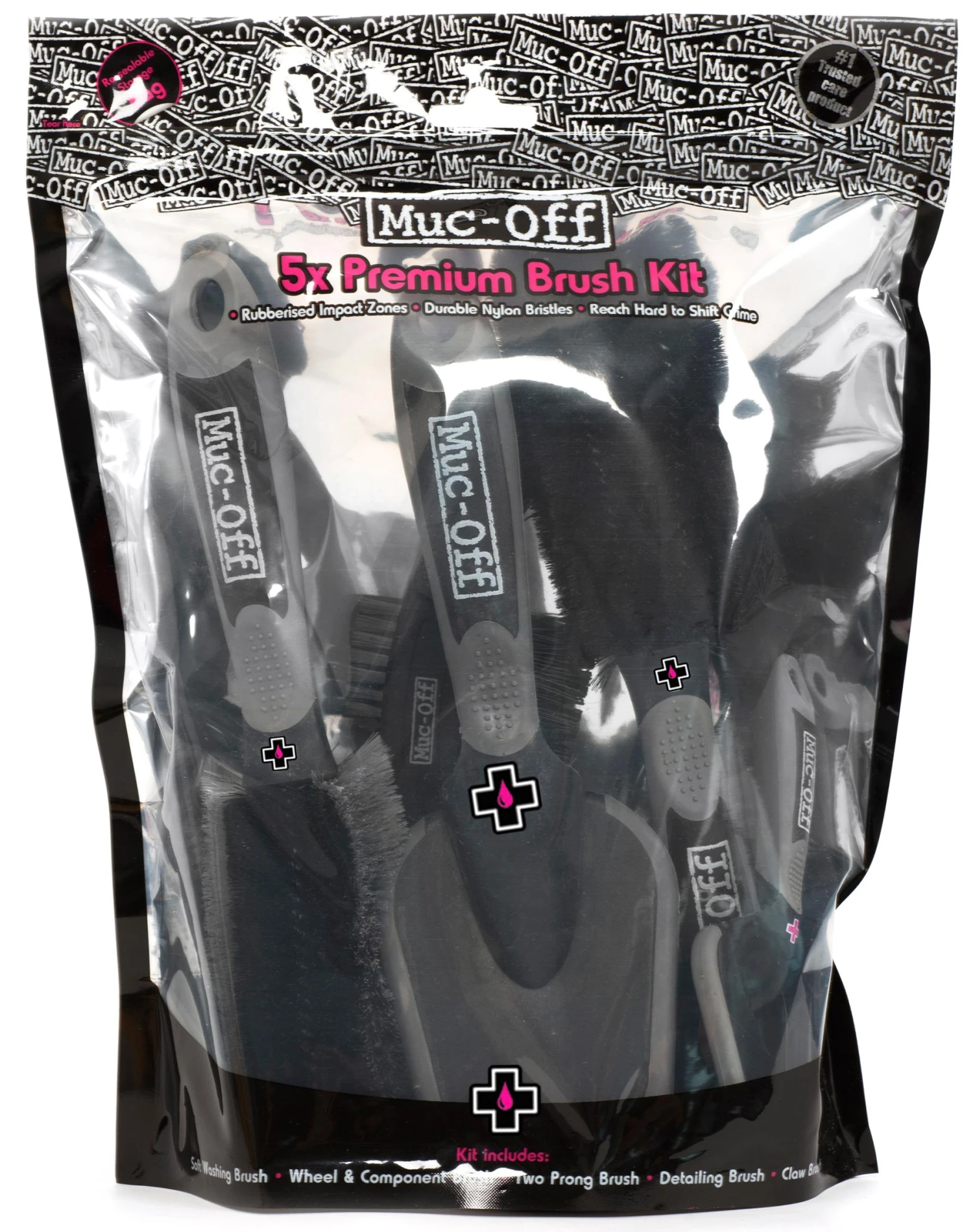 Featuring all five Muc-Off brushes in a handy storage bag: