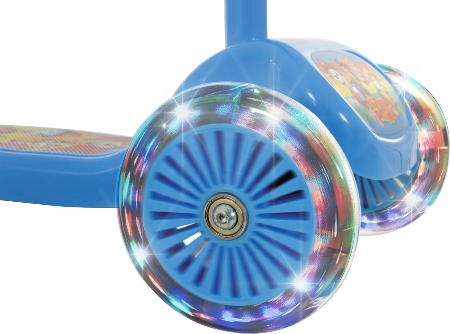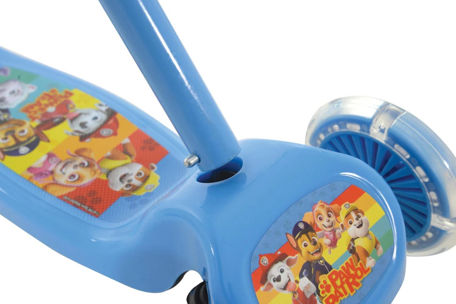 Paw Patrol is on a roll! The Tilt 'n' Turn Scooter with Lights is the perfect three-wheeled scooter to develop key coordination and balance for any little explorer. Ride in style with multi-coloured, motion activated light-up wheels that shine in the dark, and responsive “tilt 'n' turn” steering action for the ultimate fun adventure. The fully printed anti-slip footplate not only ensures safety but features cute graphics and is wider for extra stability.