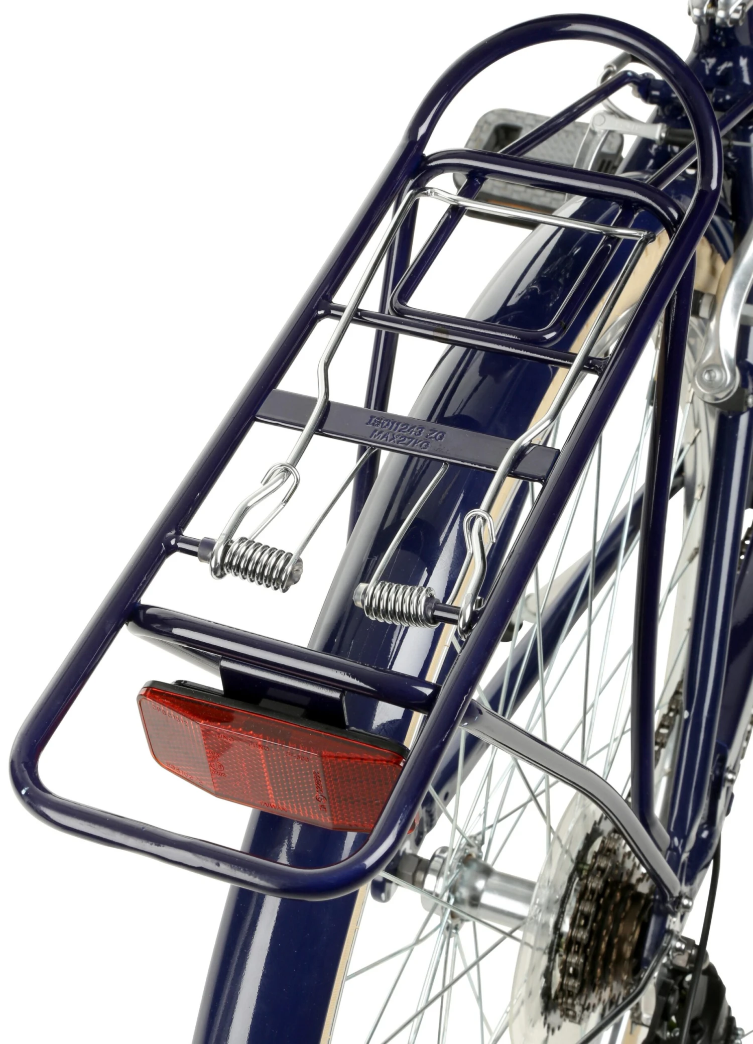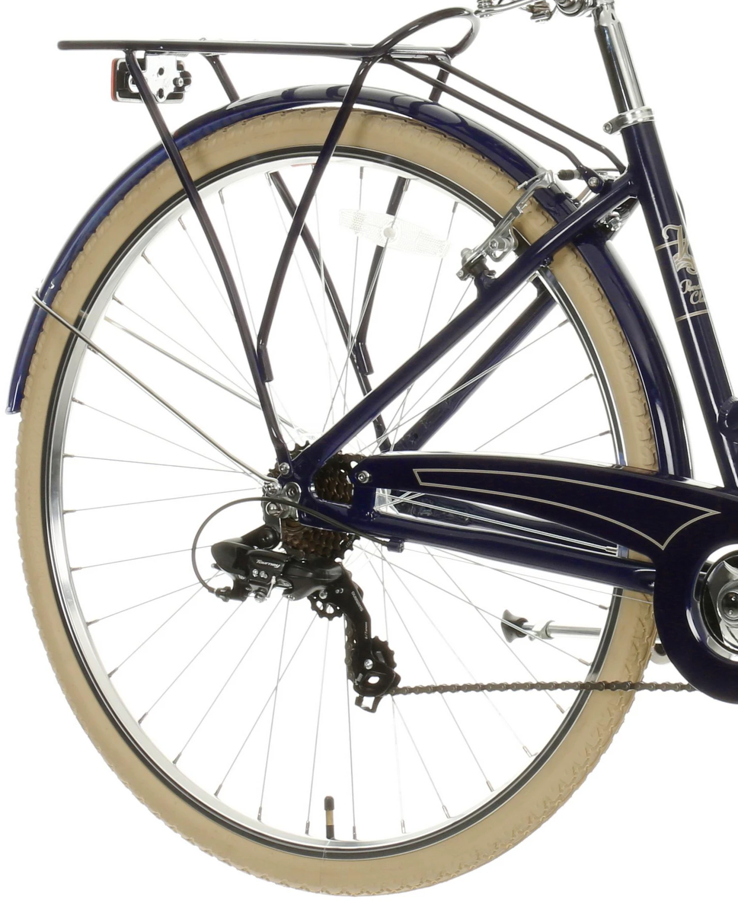 The Pendleton Somerby Hybrid Bike – Midnight Blue is the personification of style coupled with a classic design. The classic step-through frame makes hopping on and off easy, the beautiful Somerby has a sprung leather-style saddle for comfort with 7 speed Shimano gearing to help you up hills.