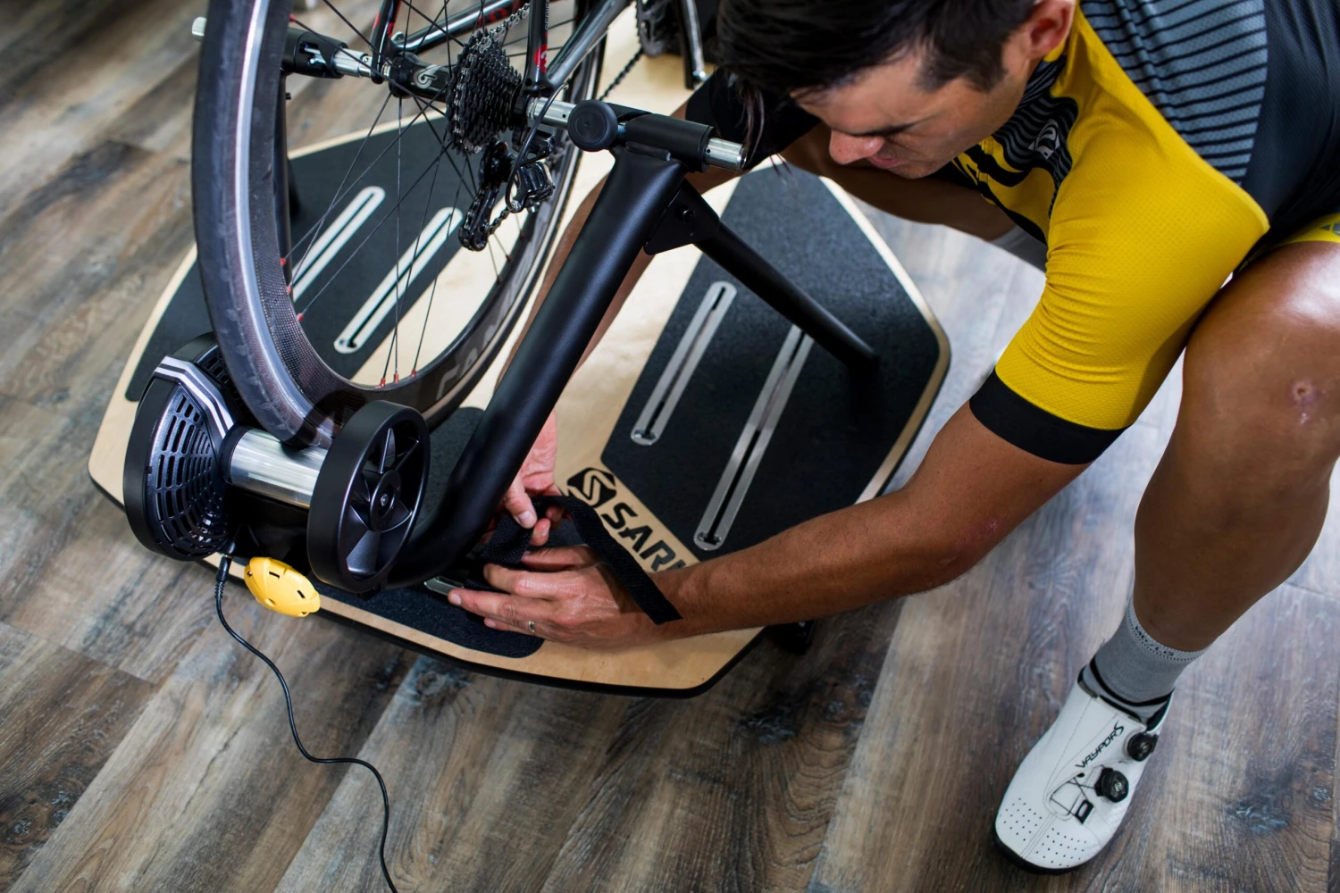 The MP1 is compatible with a wide range of setups. Complete with adjustable touch points and well-placed grip tape, the MP1 platform can be used with nearly every indoor bike trainer and training footprint.