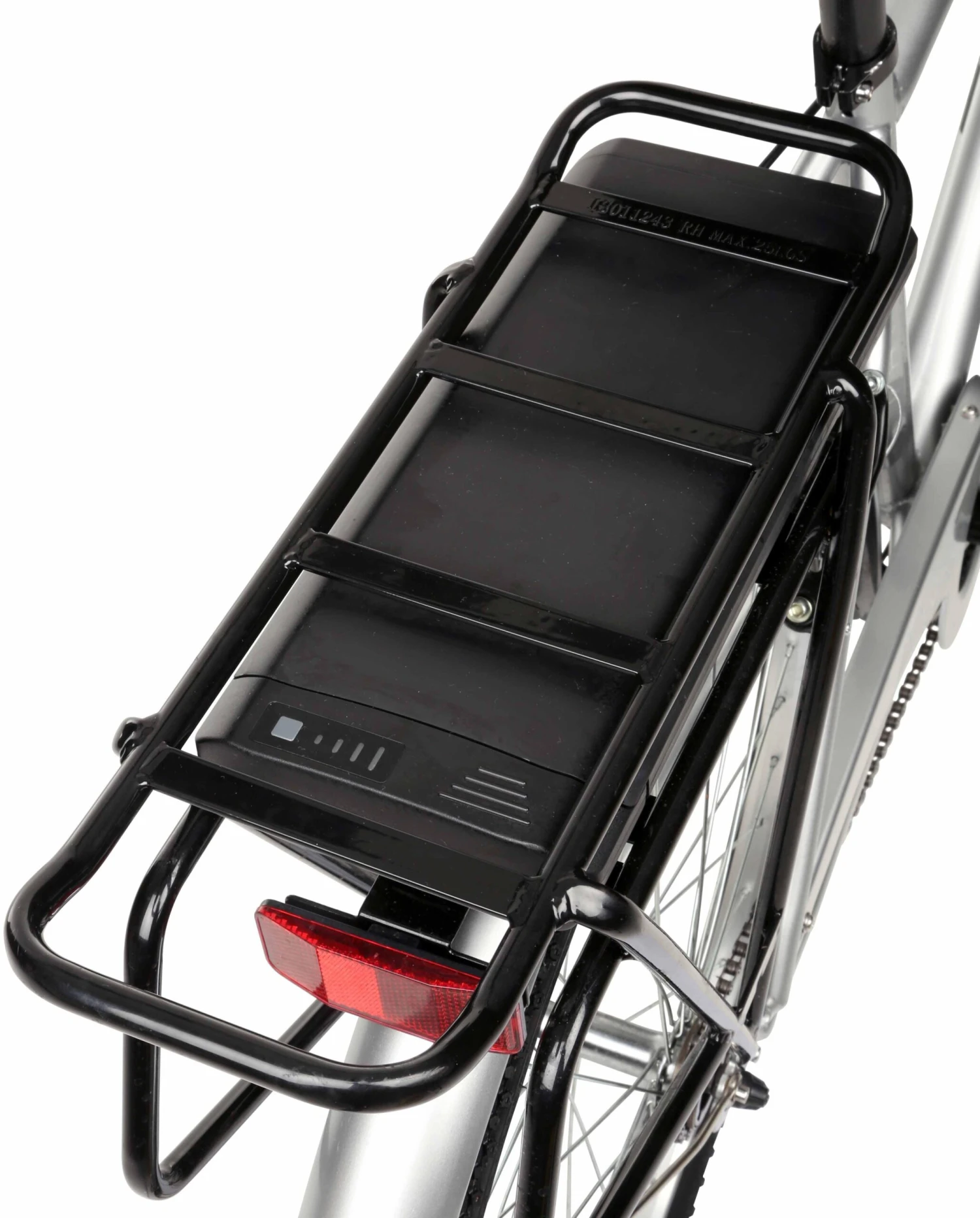 This extra power is enough to guarantee effortless rides, taking the strain out of hills and making moving off from a standstill much easier. This model comes complete with a rear pannier rack – perfect to assist your luggage during those daily commutes.
