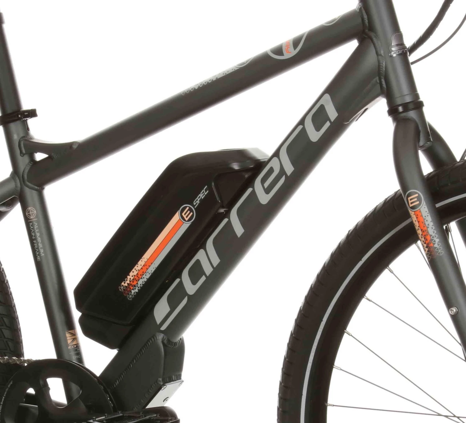 The Carrera Subway E is fitted with a rear hub Suntour Performance 36V electric motor system, seamlessly integrated into the rear wheel, providing improved traction and controlled handling. This performance motor also boasts an impressive 60NM of torque. The cadence sensor will adjust the power output based on the users pedalling speed, when the users cadence increases then the system will increase the power output.