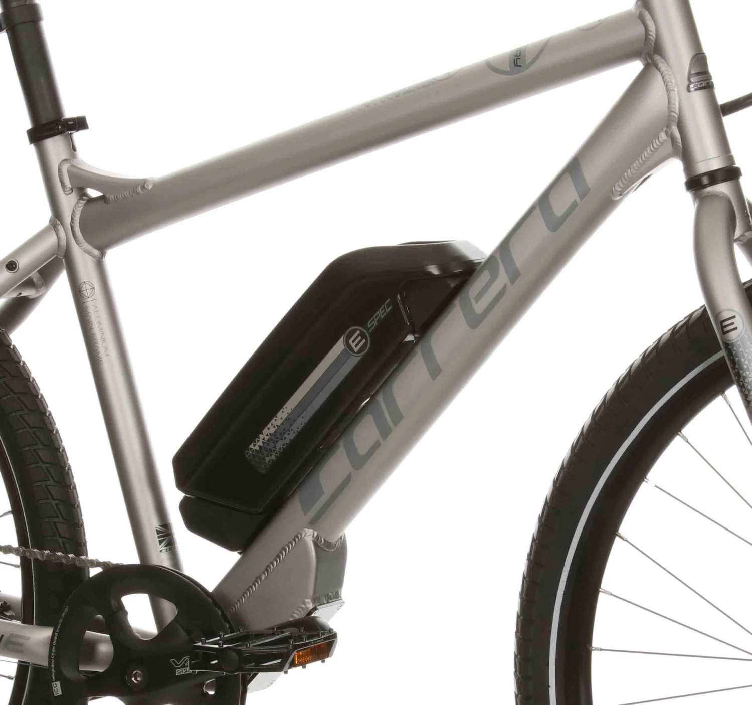 The Carrera Subway E is fitted with a rear hub Suntour Performance 36V electric motor system, seamlessly integrated into the rear wheel, providing improved traction and controlled handling. This performance motor also boasts an impressive 60NM of torque. The cadence sensor will adjust the power output based on the users pedalling speed, when the users cadence increases then the system will increase the power output.
