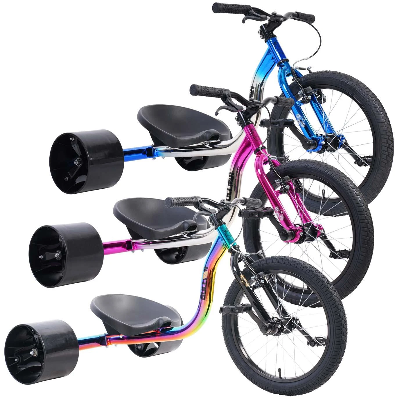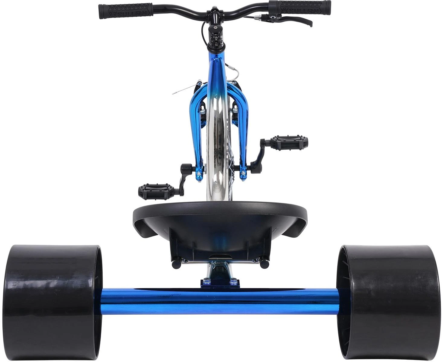 The Sullivan Big Wheel Slider Trike – has extra durable rear slick drifting wheels that are designed to get you sideways! The 18 inch front wheel keeps the trike versatile and easy for smaller riders to get up to speed. The adjustable seat makes sure your little shredder will enjoy it for years to come. Our stunning mirrored electro finish gives this trike a standout color effect that is sure to turn heads! From bucket seat to freewheel front hub, rigid hi-tensile steel frame shape & platform pedals, this little machines was designed for fun! The wide rear axle is designed for maximum stability while sliding, and the front V-brake provides plenty of stopping power. Available in 3 colourways it has the recommended age 6+ years