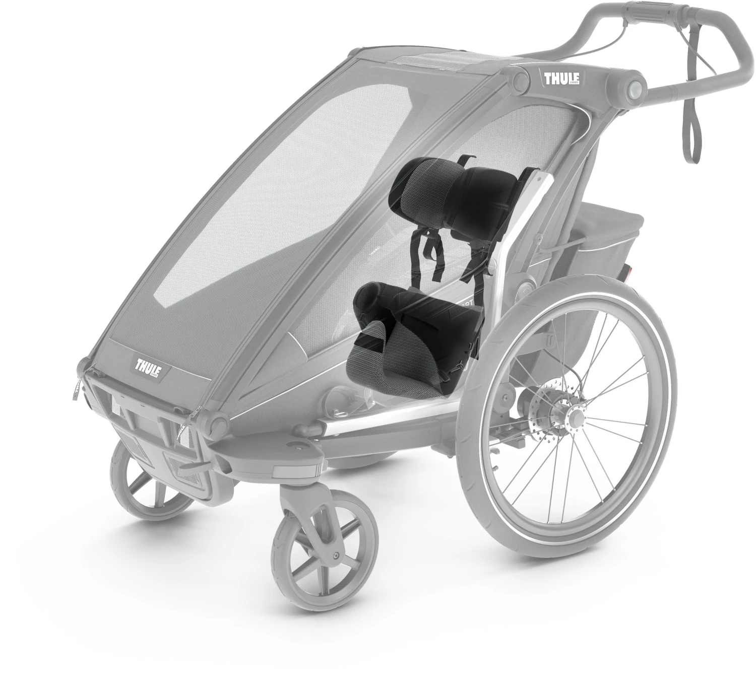 The Thule Chariot Baby Supporter is designed with padded sides and head support to ensure your baby sits comfortably upright when travelling in the Thule Chariot Cross Double Bike Trailer.