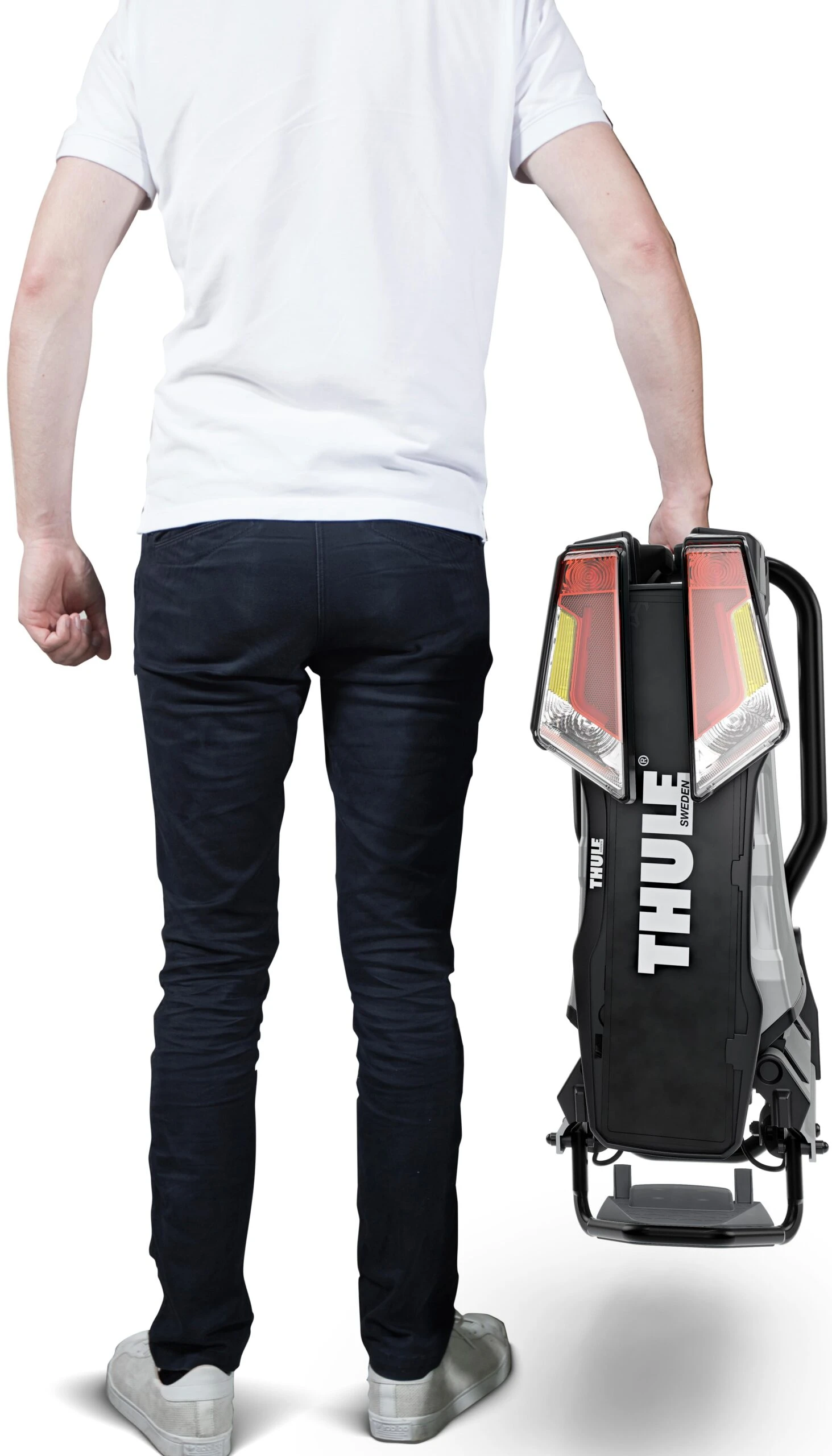 Fully foldable the Thule EasyFold XT 2-Bike Towbar Mounted Bike Rack offers convenient mounting, handling and storage.Easy trunk access even when bikes mounted due to smart foot pedal tilt