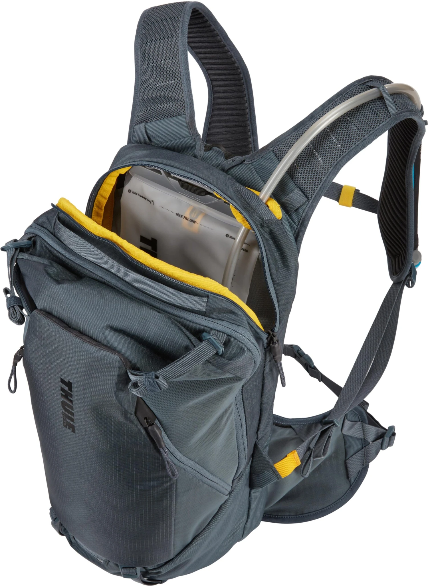 - 2.5L HydraPak reservoir features a slide closure for easy cleaning and a locking bite valve to prevent leaks before and after your ride.