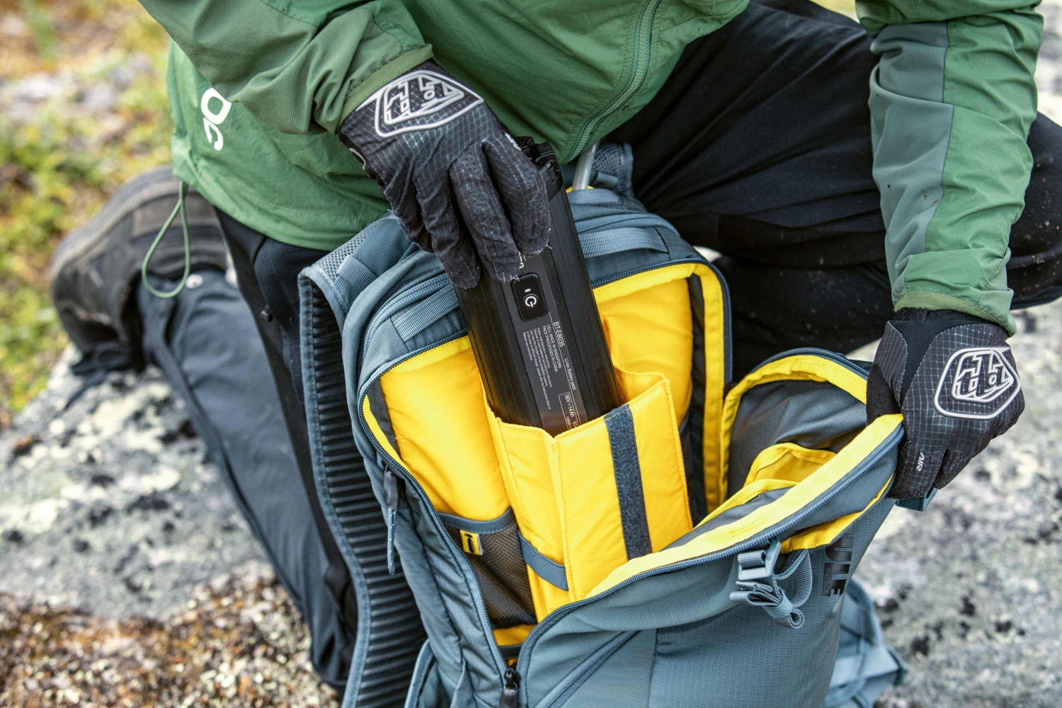 The ultimate mountain biking hydration backpack, complete with e-bike battery storage, a removable back protector and a 2.5L hydration reservoir.