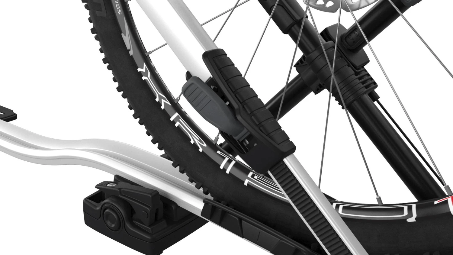 - No bike frame contact is made as the hook securely grabs the front wheel.