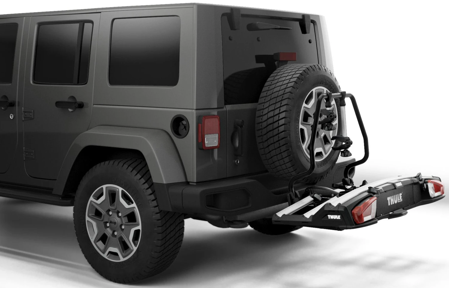 The Thule VeloSpace XT 3 Bike Spare Wheel Adapter is for use with the Thule VeloSpace XT 3 on cars that have an exterior spare wheel. The shape of the adapter means that the first wheel tray is blocked, reducing the number of bikes able to be transported from 3 to 2
