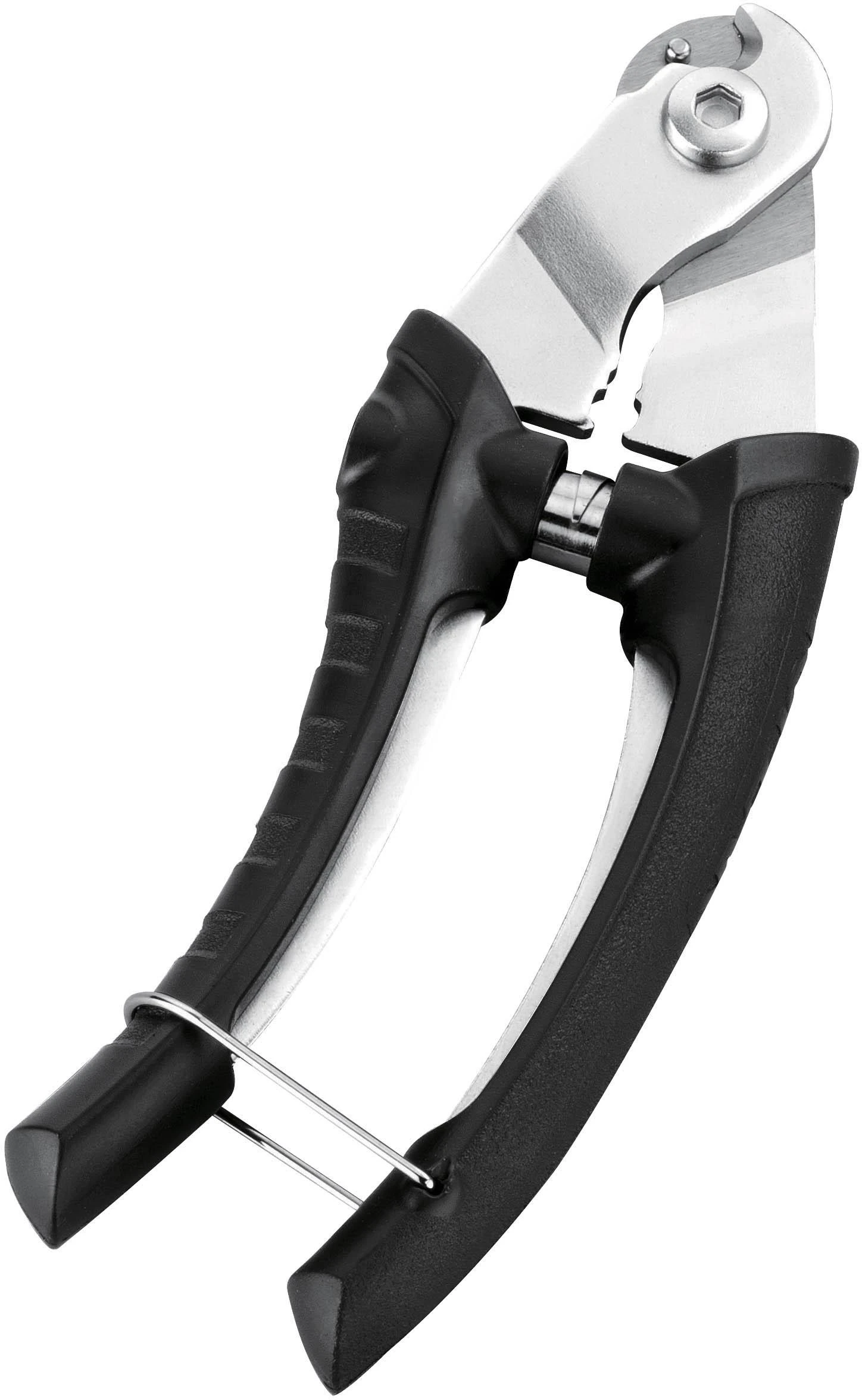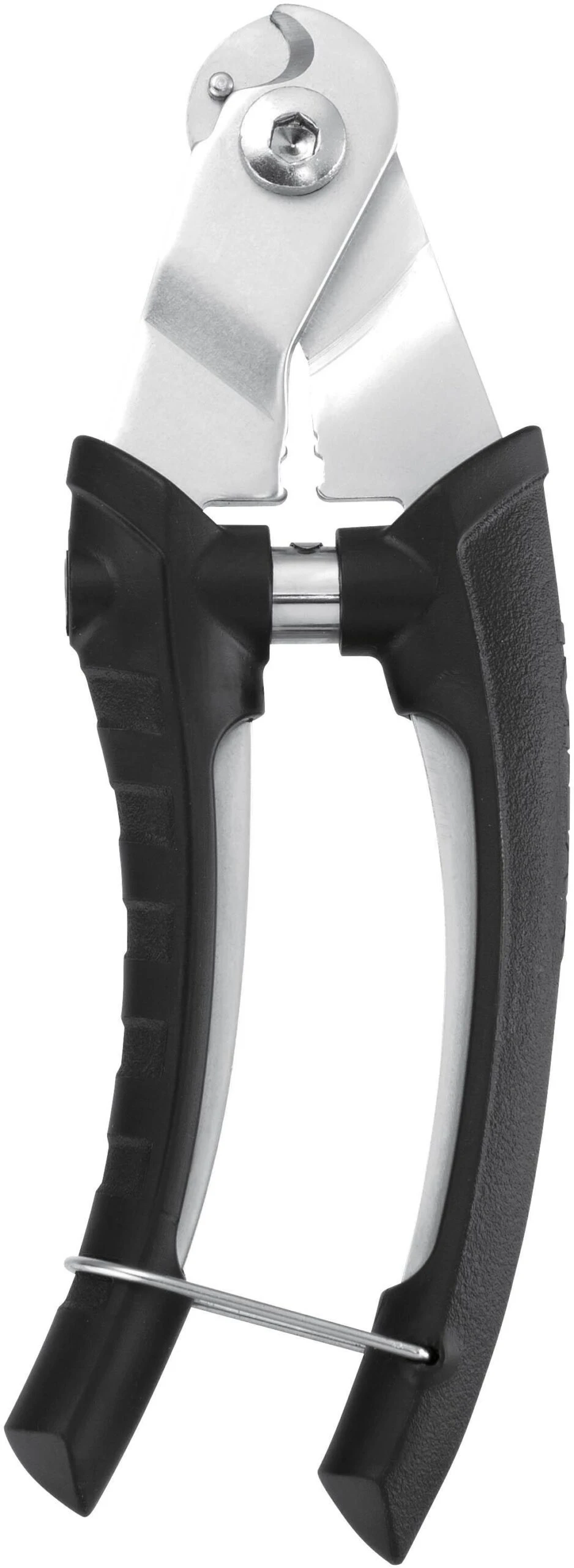 High quality, spring loaded, hardened steel cutter designed for cutting all types of bicycle cables and housing. With built-in cable and housing end ferrule crimper and housing re-former for easy installation of ferrules.