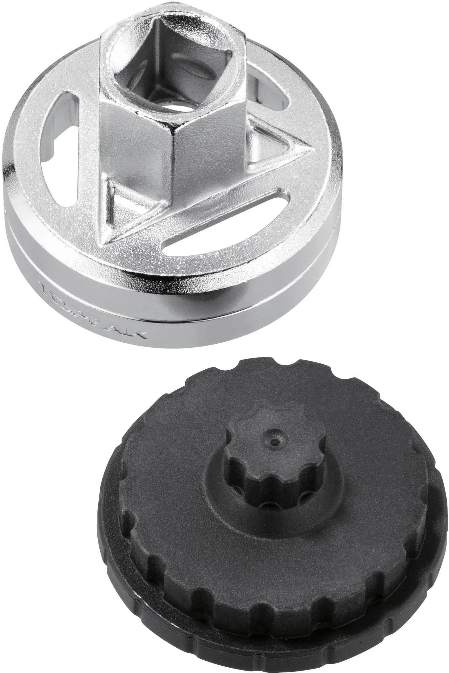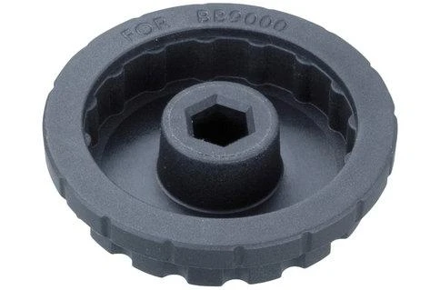 Engages the 16 notches of the external bearing cups. Small plastic tool engages the 8 internal splines of the crank arm adjustment cap and engages 16 notches of the external bearing cups for Shimano® BB 9000 for easy removal or installation.