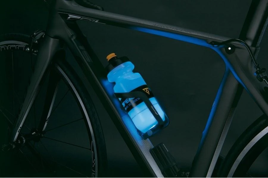 The Topeak iglow Water Bottle & Cage will turn your night ride into a wild adventure! Ingenious integration of a super bright RGB LED into our water bottle cage gives you multiple choices of color to illuminate the clear bottle for 360 degree visibility. The super bright LED has 5 colours (Purple, Blue, Green, Yellow and White).