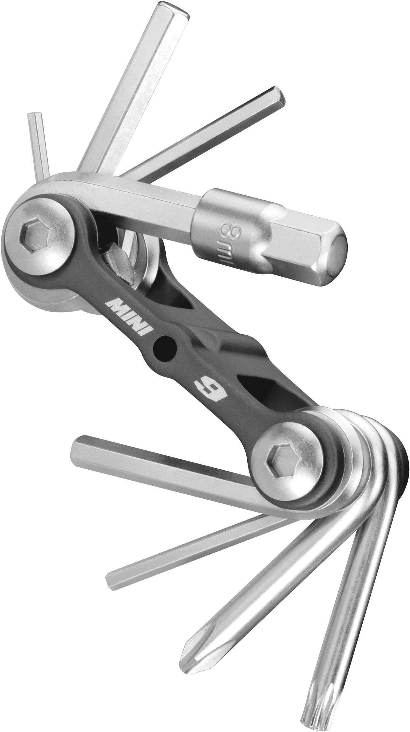 One piece ultra-light folding tool. 9 pro quality hardened steel tools fold into an extruded aluminium body ideal for road cyclists.