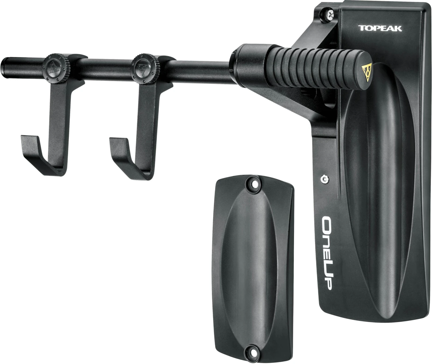 Elegant and functional, the OneUp is the perfect bicycle storage solution for apartments and other small spaces. A molded rubber bar keeps the front wheel stationary preventing the bike from twisting. Includes all mounting hardware plus a molded rear wheel pad to prevent tyre marks on the wall.