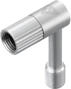 An anti-air loss Schrader valve connector perfect for rear shocks or small wheels with hard to reach valves. Ensures accurate pressure even during removal.