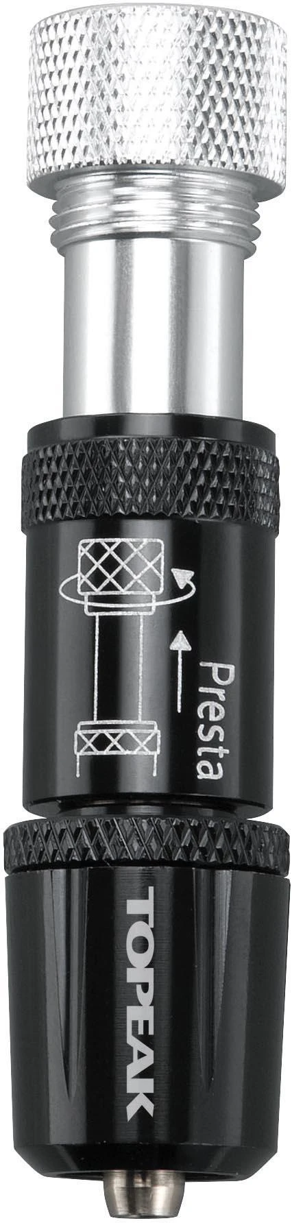 This incredibly compact CNC aluminium piece threads directly to Presta or Schrader valve with no need to change internal parts or use extra adapters.