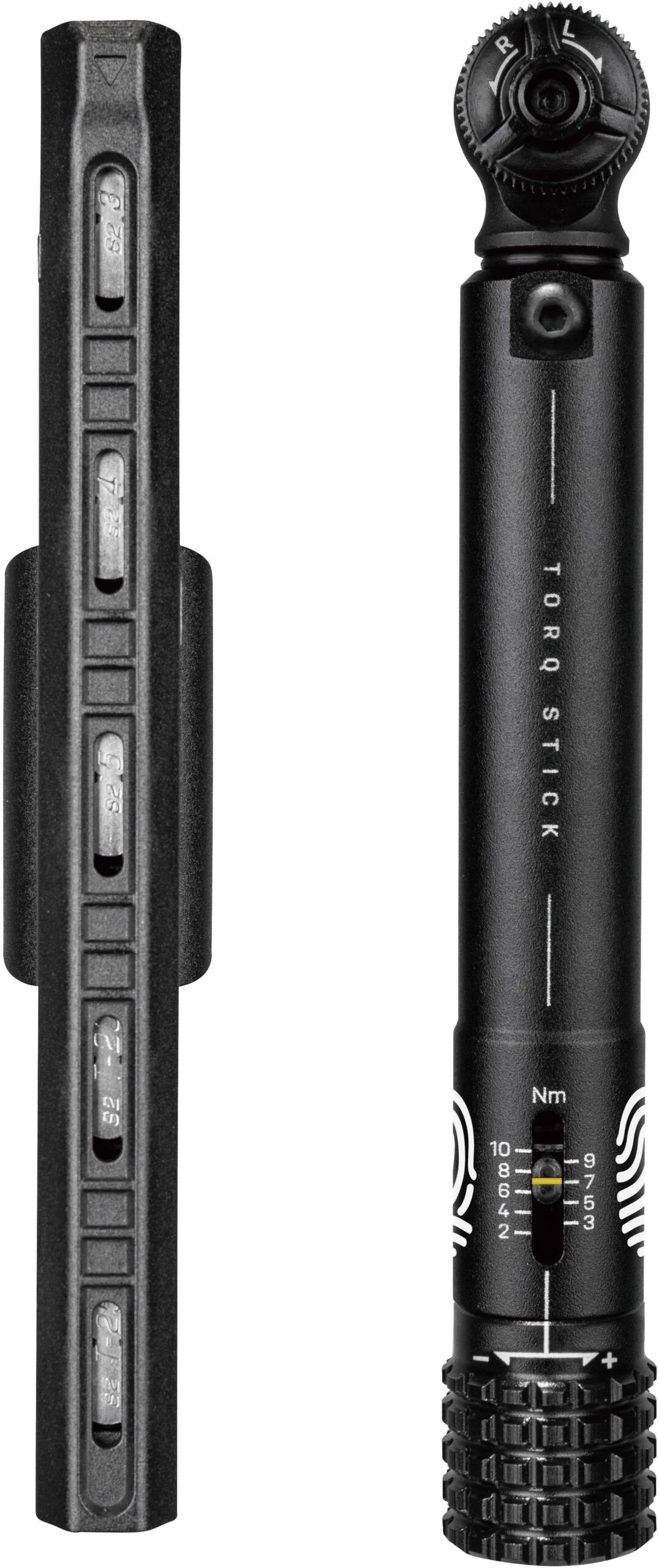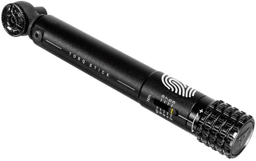 An incredibly compact torque wrench with adjustable torque value range of 2-10 Nm. A standard hex drive reversible ratcheting head with adjustable preset torque values allows you to tighten frame or component bolts safely and with confidence. Includes a five bit storage pen with visible window design letting you find the correct bit quickly and easily.