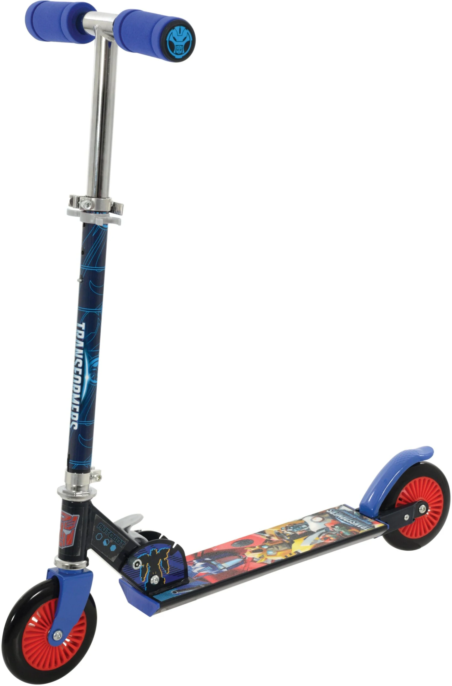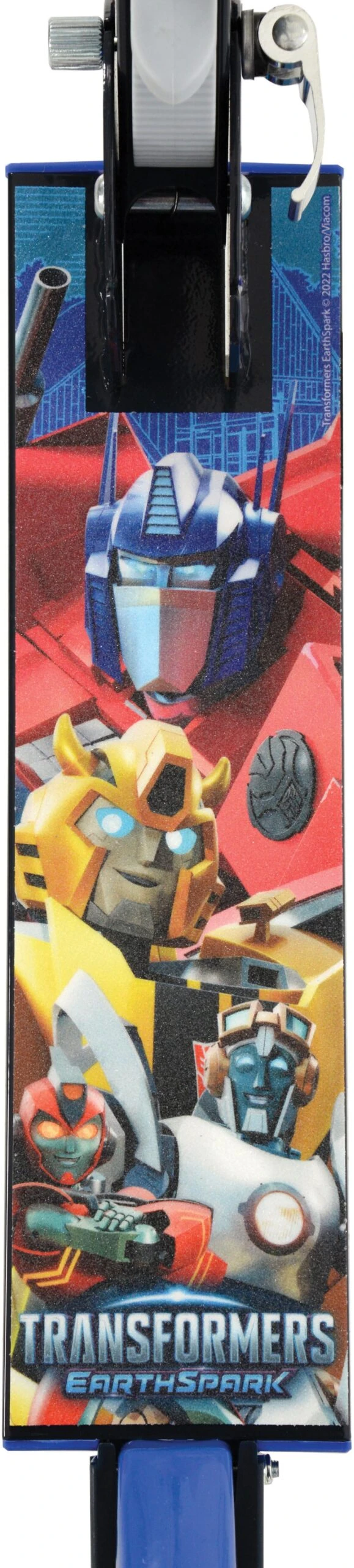 Autobots, transform and roll out! The Transformers Earthspark folding in-line scooter is ideal for older riders who have mastered 3 wheels. Featuring soft touch handlebar grips, reactive rear footbrake and slick puncture proof tyres, riders are in for a fast and comfortable journey!